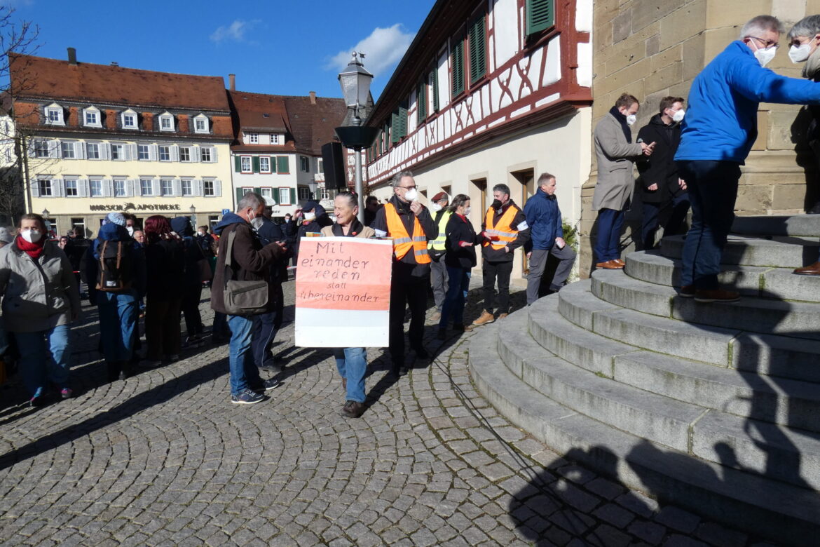 Proteste am Rande der Kundgebung in Öhringen. Hohenloher Bundestagsabgeordnete Kevin Leiser (SPD) und Valentin Abel (FDP) rufen zur Geschlossenheit auf. >>> Hier geht's direkt zum Video
