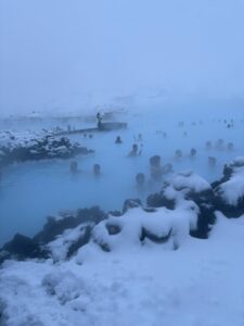 Ansonsten kann man auch Tagestouren mit Bussen zu den einzelnen Sehenswürdigkeiten buchen. Wir waren kurz nach einem größeren Vulkanausbruch über den Winter in Island. Überall sah man noch die inzwischen abgekühlten schwarzen Lavafelder auf dem Weg in die Blaue Lagune. Die Blaue Lagune ist wohl die bekannteste Sehenswürdigkeit in Island. Und man kann definitiv sagen: Sie sieht wirklich so unglaublich aus wie auf den Fotos im Internet. Das extrem hellblaue Wasser ist schon ziemlich beeindruckend. Allerdings ist sie im Vergleich zur Sky Lagoon wesentlich voller mit Touristen. Was wir auch gemerkt haben: Man sollte wegen der hohen Konzentration an Mineralien auch nicht allzu lange in der Blauen Lagune bleiben.