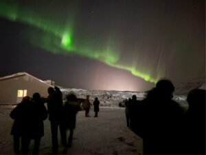 Viele Touristen kommen, um die Nordlichter zu sehen. Hier werden viele verschiedene Touren angeboten, unter anderem eine Yacht-Tour abends auf dem Ozean oder eine Jeep-Tour, um Nordlichter zu „fangen“. Wir haben sie durch Zufall extrem gut in der Silvesternacht gesehen. Weg vom Trubel haben wir uns eine Übernachtung im Northern Lights Inn gebucht. Das Hotel befindet sich direkt neben der Blauen Lagune in einer relativ einsamen Landschaft. Hier haben wir dann kurz vor Mitternacht die grünen Streifen am Himmel gesehen, Am besten sieht man die Lichter tatsächlich, wenn man Fotos davon mit dem Handy macht. Auf den Bildern sind sie richtig grün zu sehen. Wenn man sie hingegen filmt, erkennt man sie auf den Handyvideos leider kaum.