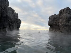 Während die Blaue Lagune unweit des Flughafens ist (viele Touristen besuchen daher die Blaue Lagune als erstes, wenn sie nach Island kommen – oder aber am Ende Ihrer Reise als Ausklang), befindet sich die Sky Lagoon unweit der Hauptstadt. Erst 2021 eröffnet ist sie wesentlich moderner als die Blue Lagoon, was die Angebote an Essen, Trinken, die Umkleiden und den SPA-Bereich betrifft. Das 7-Stufen-SPA-Ritual sollte man allein schon wegen des Ausblicks auf den Ozean von der Panoramasauna aus mit buchen. Aber auch der Infinity-Pool mit dem 40 Grad heißen Wasser, der direkt an das Meer angrenzt, ist unbeschreiblich.