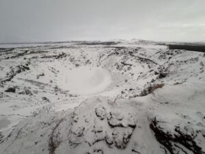 Vulkankrater Kerid. Touristen können auch in den Schlund hinabsteigen. Foto: GSCHWÄTZ