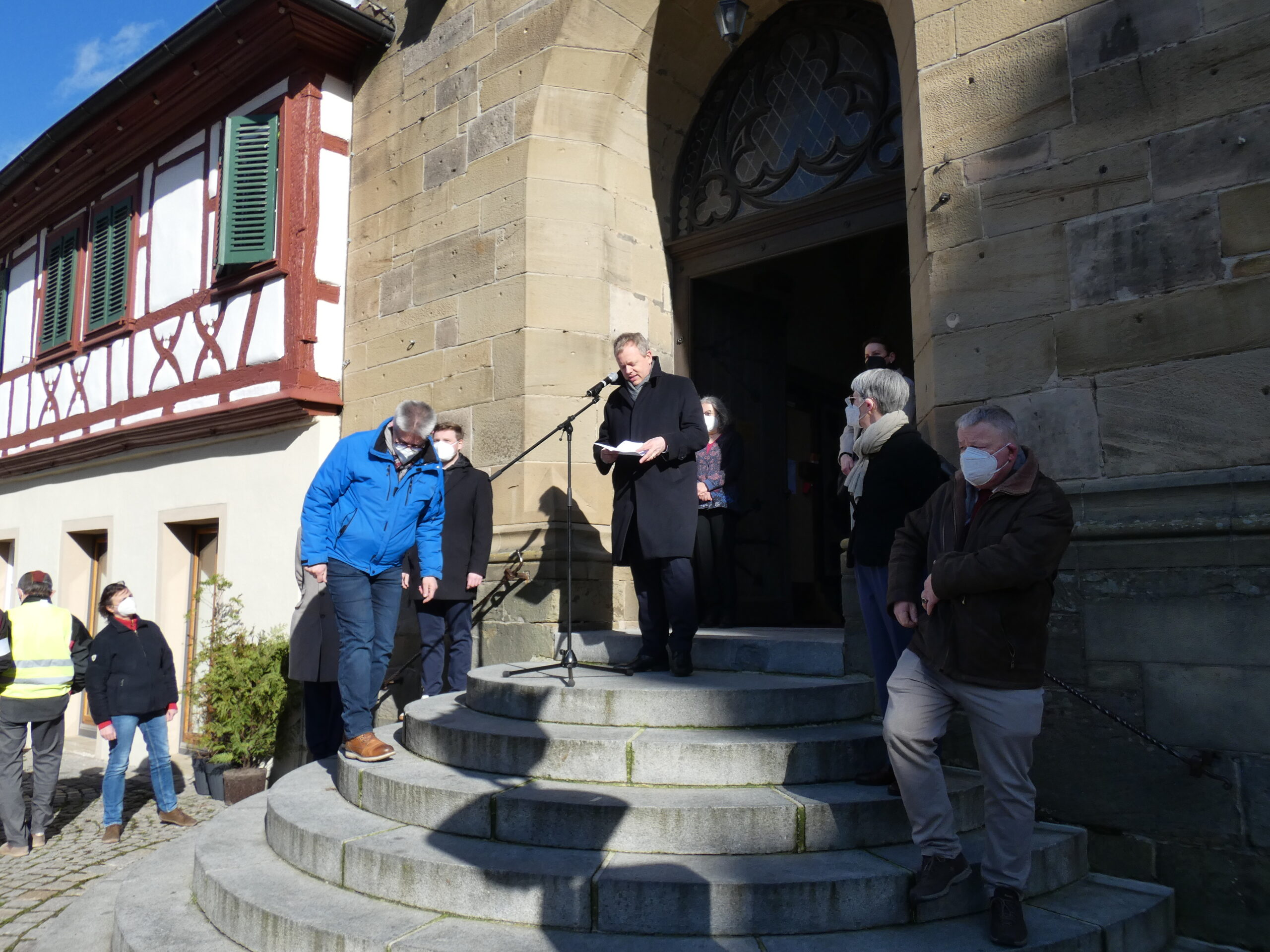 Arnulf von Eyb betont: „Wir wollen mit dieser Aktion Frieden stiften in der Gesellschaft.“ Die Pandemie mache „uns allen zu schaffen“ und jeder wünsche sich, so von Eyb, „wieder zurück in den alten Modus zu kommen“. Wir können nicht zulassen, dass eine kleine Gruppe denkt, wir werfen alles über den Haufen, was mühsam in einer Gesellschaft entwickelt wurde. Man müsse nur einen Blick zurück in die Geschichte werden, um zu wissen, wie es sei, nicht in einer Demokratie, sondern in einer Diktatur zu leben. „Wir müssen an unseren demokratischen Regeln festhalten“, betonte der Dörzbacher zum Schluss seiner Rede.