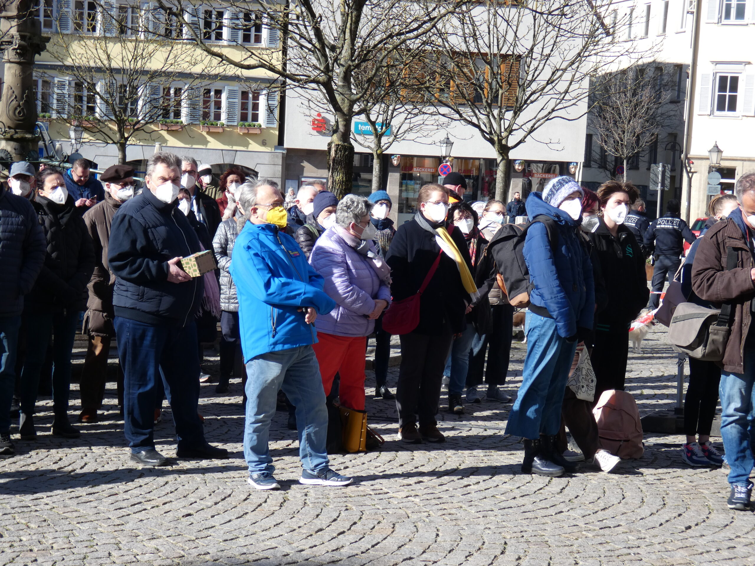 Zuhörer:innen. Kundgebung in Öhringen am 19. Februar 2022. Foto: GSCHWÄTZ