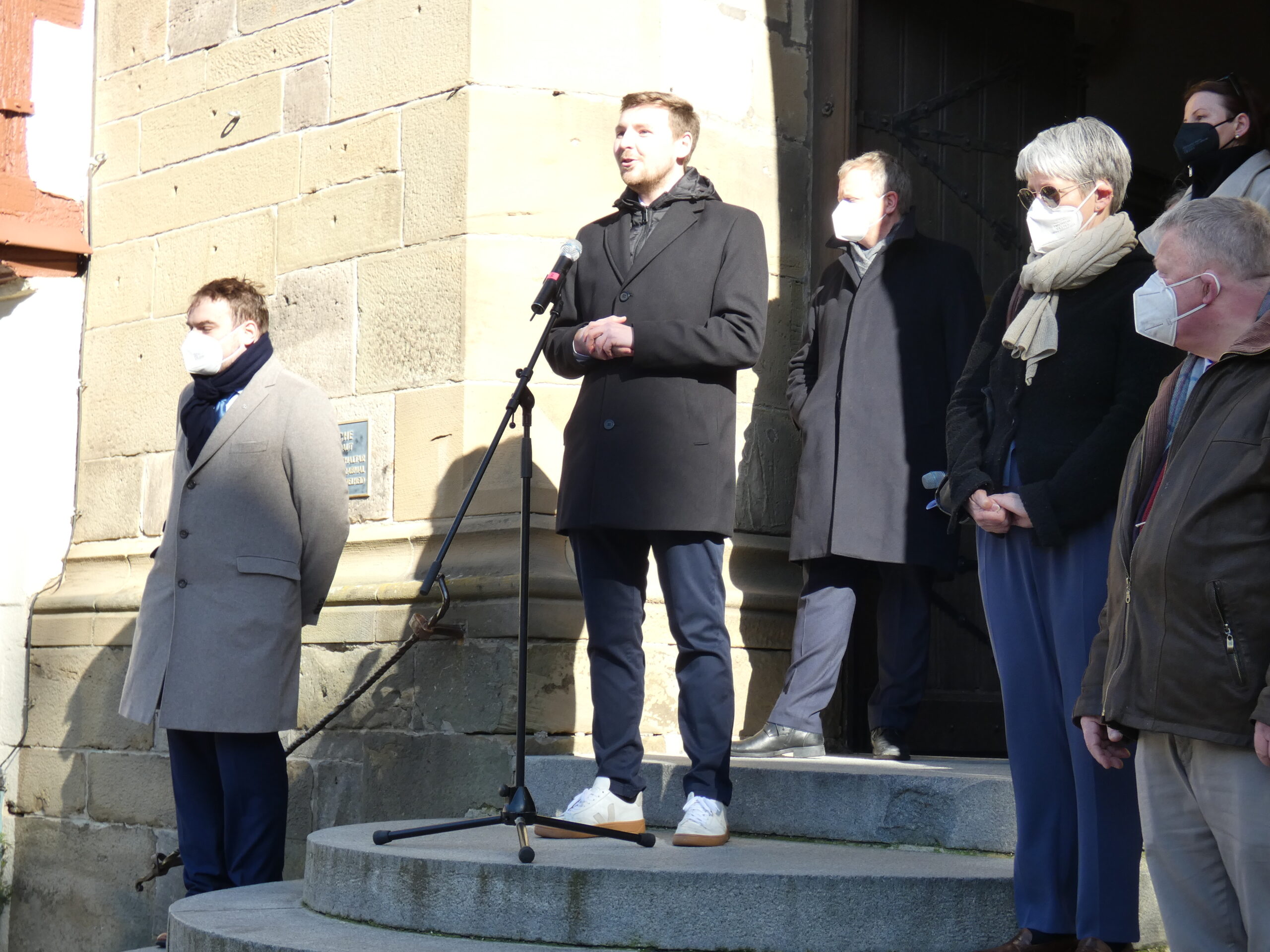 Catherine Kern bedankte sich zunächst bei „allen Menschen, die mit Geduld, Nachsicht und Solidarität durch diese Pandemie gehen, um nicht nur sich zu schützen, sondern auch die Schwächeren in unserer Gesellschaft. Unsere Demokratie ist in Gefahr und nicht erst jetzt“, betonte Kern. Diese gelte es zu schützen. Kern erinnerte an die Flüchtlingskrise 2016, als es ebenfalls Proteste gegen die Einwanderungspolitik Angela Merkels gab. „Teile der Bevölkerung haben diese Flüchtlinge abgelehnt. Sie hatten Angst. Die damalige Ausnahmesituation wurde von Rechtsextremisten ausgebeutet.“ Dabei verweist die Grünen-Abgeordnete auf die Demos von „Hohenlohe wacht auf“ im Hohenlohekreis. Und wie eine „extrem rechte Partei“ daraus versucht habe, Kapital zu schlagen. Heute nach zwei Jahren Pandeme gäbe es wieder einen Teil der Gesellschaft, der „vieles in Frage stellt“, von der Pandemie „hart betroffen sind“ und sich von „Fake News im Internet beeinflussen lassen“ und „wieder nutzen Rechtsextremisten die Gunst der Stunde. Bei den Spaziergängen laufen wieder solche Gruppierungen mit“, sagt Kern. „Nur gemeinsam kommen wir aus dieser Pandemie raus.“ Sie bittet die Bevölkerung daher, „Geduld zu haben“.