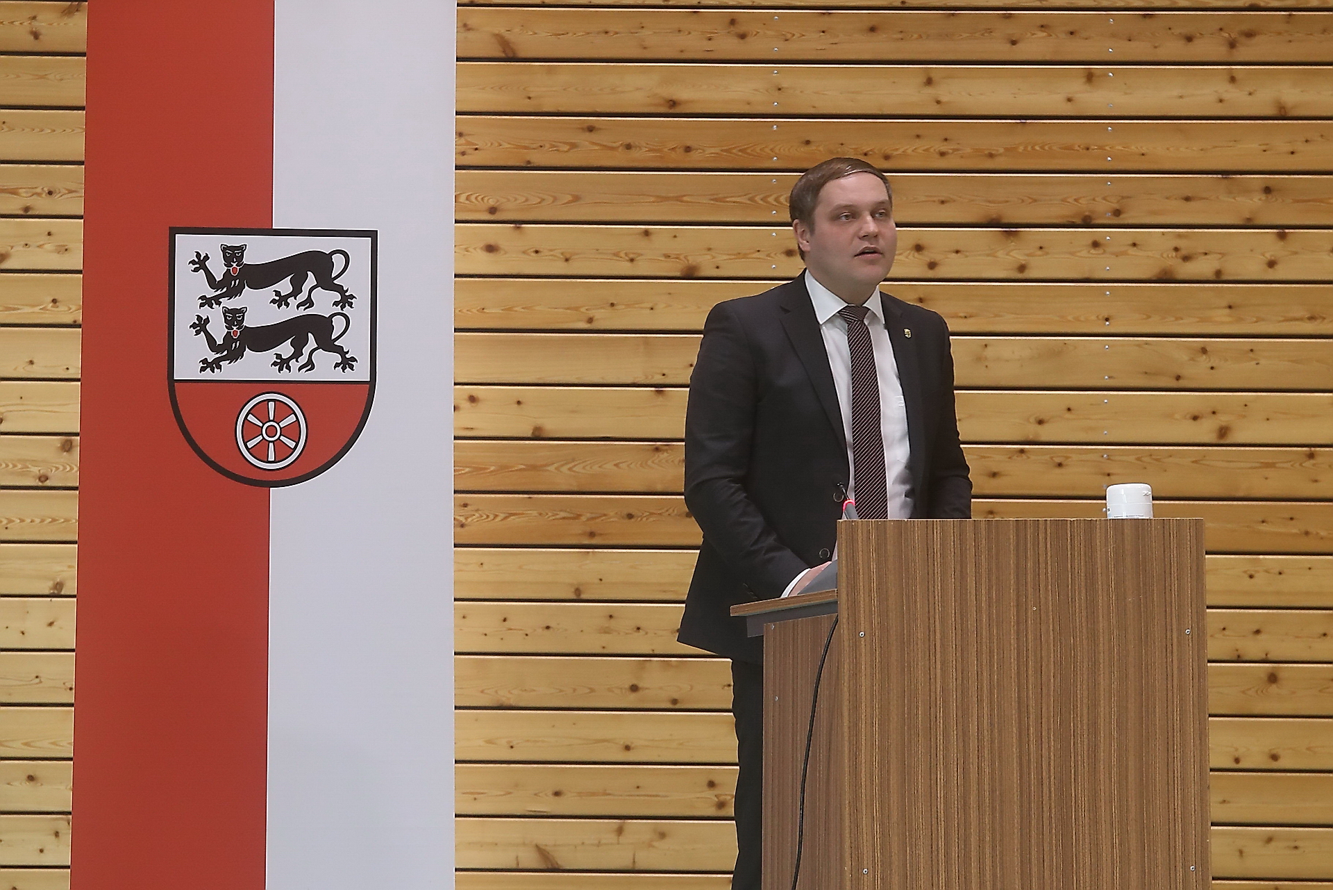 Zum Ende seiner Rede betrachtet er die Erhöhung der Schulden des Landkreises: Da diese Schulden aus Investitionen in Großprojekte stammen, kann die CDU diese Schuldenaufnahme unterstützen.