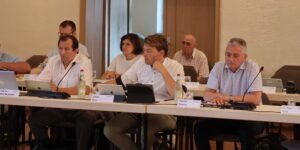 Achim Beck (Mitte) im Juni 2023 bei einer Kreistagssitzung in der Stadthalle in Ingelfingen. Foto: GSCHWÄTZ