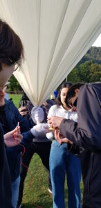 Das Ganerben-Team präsentiert die Sonde mit den Messinstrumenten vor dem Start. Die Technik-Chefin Anne Kartun hält die Box. Quelle: Stadtverwaltung Künzelsau