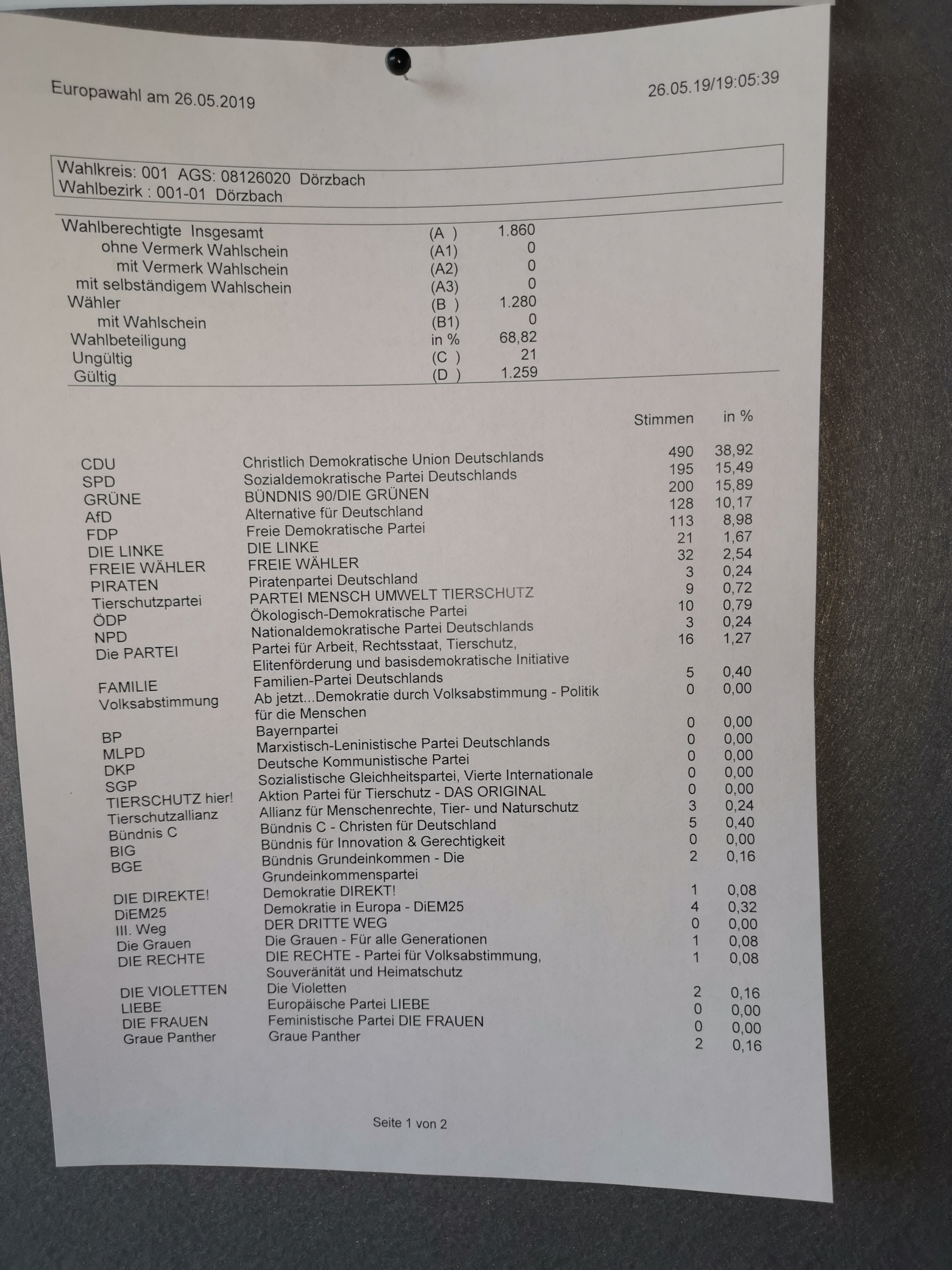 Ergebnisse Europawahl 2019. Krautheim. Foto: GSCHWÄTZ