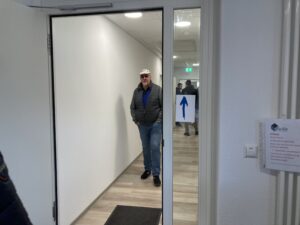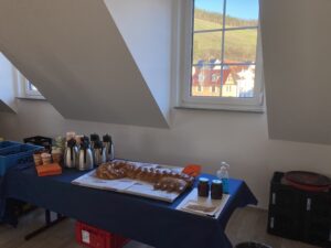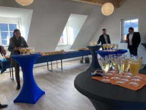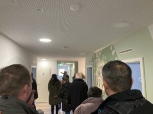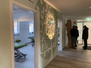 Das Gesundheitszentrum ist voll moderner Technik. Manchmal vielleicht etwas zu modern, wie die Physiotherapeutin Anke Tröbs erzählt: „Da war die Sache mit den Waschbecken. So war eine Patientin in der Praxis, die seine Tasche ablegen wollte und sich dafür das Waschbecken aussuchte. Nur hatte dieses einen Bewegungsmelder und bei der Tasche handelte es sich um eine Stofftasche…“ Über diese Feuertaufe kann Anke Tröbs mittlerweile lachen- und zwar gemeinsam mit den anderen Besucher:Innen im Kursraum, in dem für die Gäste der Veranstaltung ein kleines Buffett vorbereitet wurde.