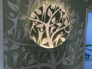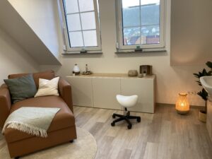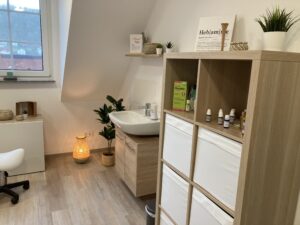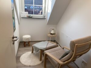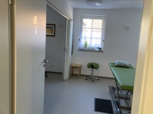 Die fertigen Praxen sind mit liebevollen Deko-Details ausgestattet und Patient:Innen werden von angenehmer Wärme empfangen. Dies ist vor allem Hebamme Maren Reinhardt wichtig: „Die Familien sollen sich wie Zuhause fühlen“, sagt sie und zeigt das „Herzstück“ ihrer Praxis, den Untersuchungs-, Behandlungs-, und Besprechungsraum.