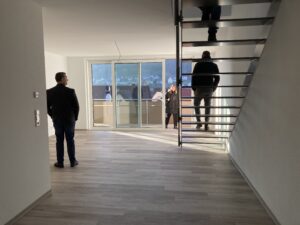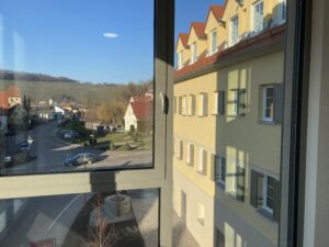 Im neuen Gesundheitszentrum gibt es eine Logopädiepraxis, eine Physiotherapiepraxis mit integrierter Fußpflegepraxis, eine Hebammenpraxis, außerdem psychologische Betreuung und eine Kinderarztpraxis, worauf Andreas Siebert besonders stolz ist. In den Wohnungen kann man in alle Richtungen hinausschauen, zudem sind sie barrierefrei.