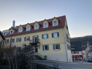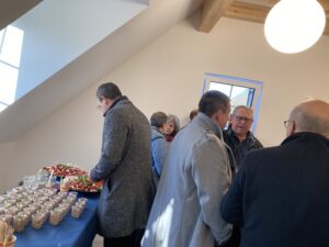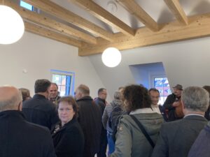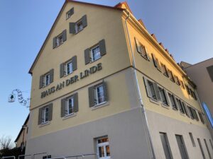 Andreas Siebert berichtet in seiner Rede von einem Prozess der Sanierung und des Neuanbauens, der von Herausforderungen wie unbekannten Wasserleitungen und Bahnschienen geprägt war, aber nun mit einer Gesamtsumme von 6 Millionen Euro zu einem Ergebnis kommt, das sich sehen lässt. Siebert sieht im „Haus an der Linde“ einen Gewinn für das ganze Kochertal. Bürgermeister Achim Beck möchte sich dem gerne anschließen, dann geht nach drei Sätzen sein Mikrophon aus. „Mir wurde ja schon gesagt, dass ich nicht so lange reden soll, aber dass es so begrenzt ist…“, scherzt er.