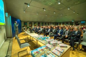 Dass der Klimawandel in vollem Gange ist, zeigt der Meteorologe Sven Plöger eindrucksvoll mit Daten und Beispielen aus Forschung und Wissenschaft in seinem Vortrag auf. Humorvoll aber bestimmt nimmt er die Gäste des Abends mit durch Klima-Statistiken und -Prognosen: „Wenn jetzt noch jemand nicht sieht, dass es wärmer wird, muss er zum Optiker. Die Klimakrise ist ein Thema, das wir nicht ignorieren können.“ Eindrucksvolle Bilder vom rasant kleiner werdenden Grindelwald-Gletscher und dem Feldsturz, der der Stieregghütte in den Schweizer Alpen buchstäblich den Boden geraubt hat, machen betroffen und deutlich, wovon der bekannte Meteorologe spricht. „Der Klimawandel ist ein schleichender Prozess, der aber schon jetzt dramatische Auswirkungen in den Bergen hat. Wenn das Eis dort taut, zerfallen die Berge. Wenn die Gletscher weg sind“, so Sven Plöger, „können sie kein Wasser mehr liefern.“ Die Folge werde sein, dass die Flusspegel weiter sinken. Das hat Auswirkungen auf die Trinkwasserversorgung, die Schifffahrt und die Kühlung von Atomkraftwerken, die in Frankreich zeitweise deshalb sogar abgestellt werden mussten. Deshalb seien die Erneuerbaren Energien der Weg, Investitionen in diesem Bereich nicht nur sinnvoll und notwendig, sondern auch in finanzieller Hinsicht dringend. „Jeder nicht vernünftig in Klimaschutz gesteckte Euro muss mit zwei bis elf Euro zurückgezahlt werden.“