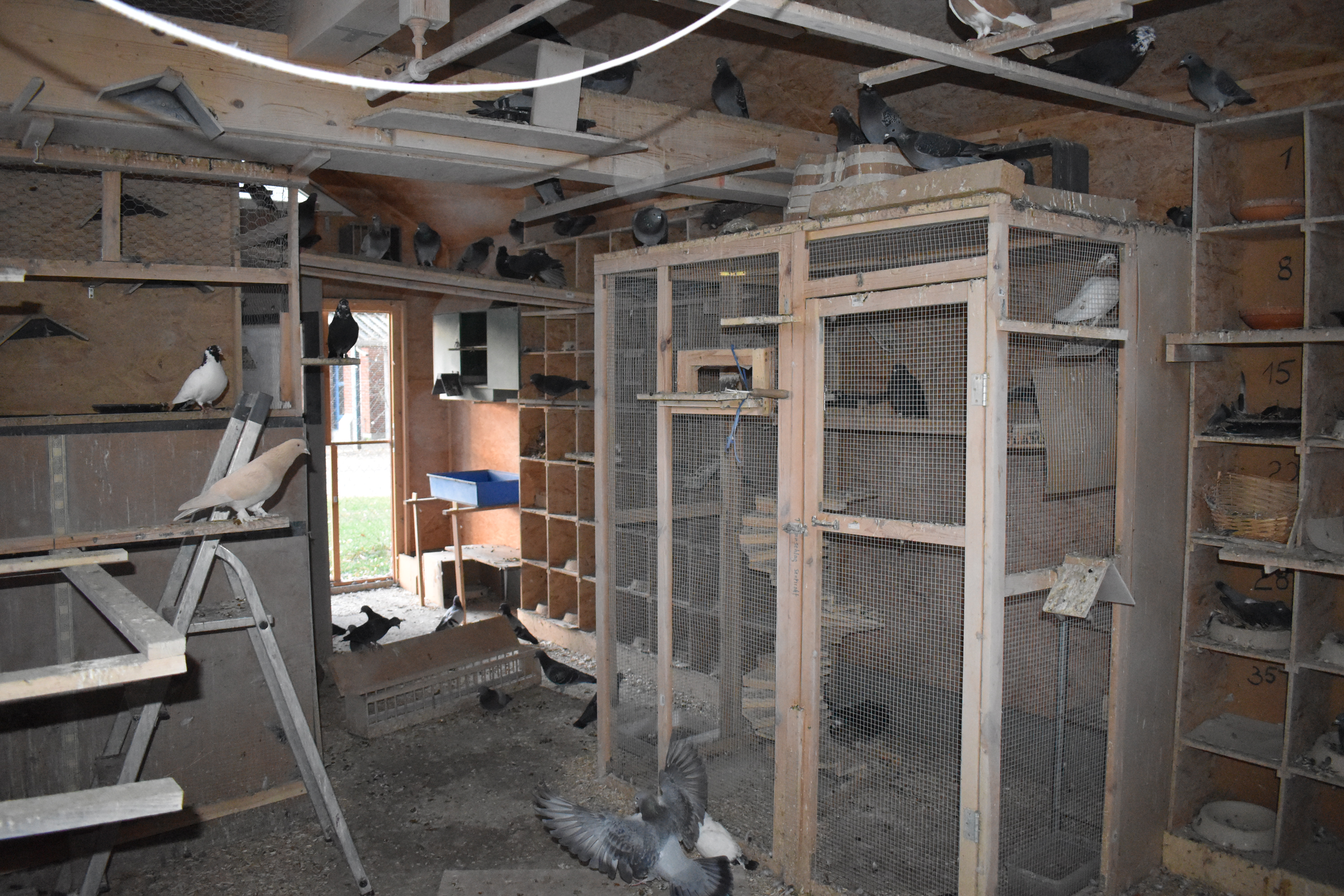 Für die Arbeit im Taubenhaus will man gut ausgerüstet sein.
