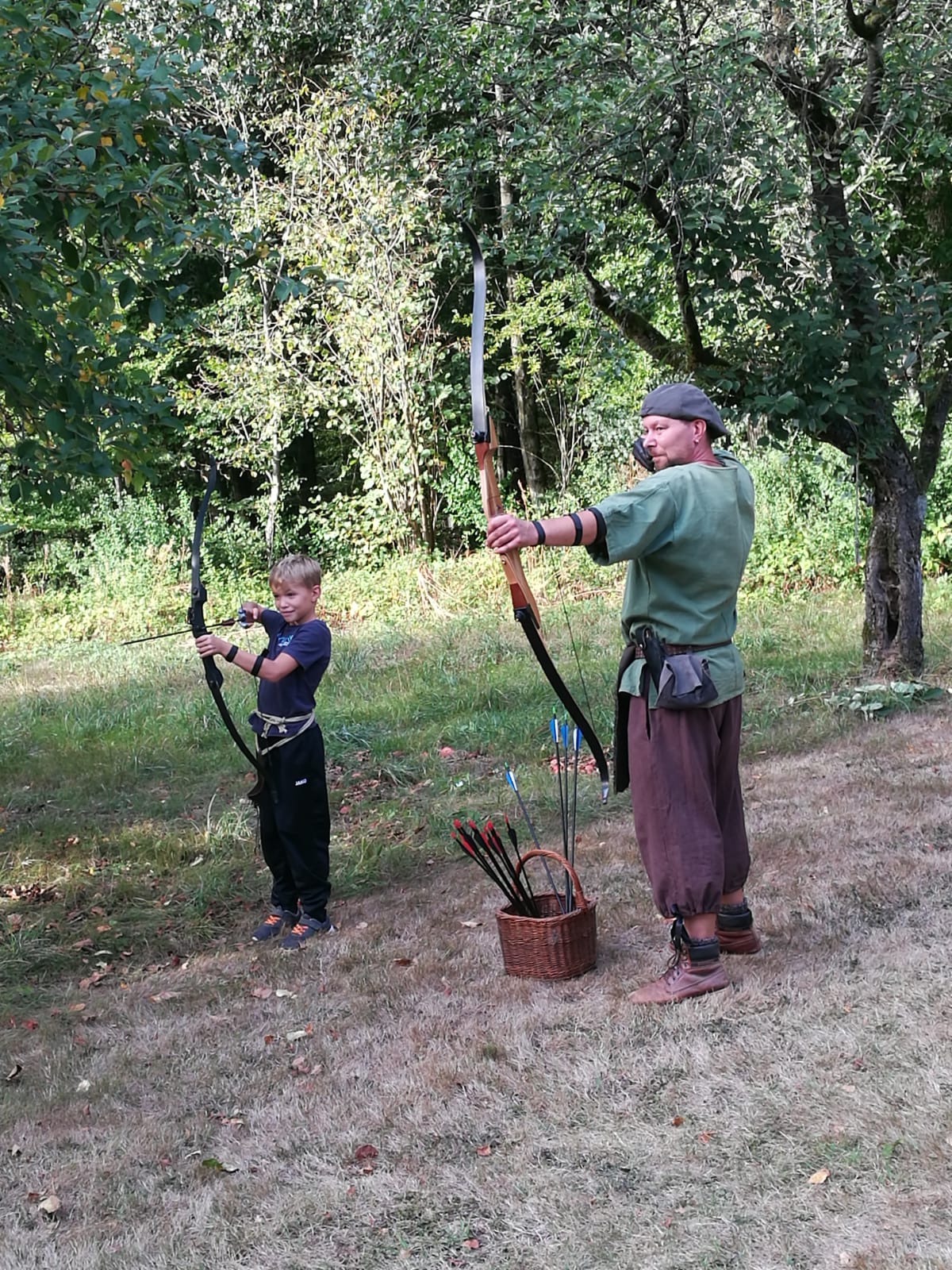 Manuel Bayer beim Bogenschießen mit Sohn Paul. Foto: GSCHWÄTZ