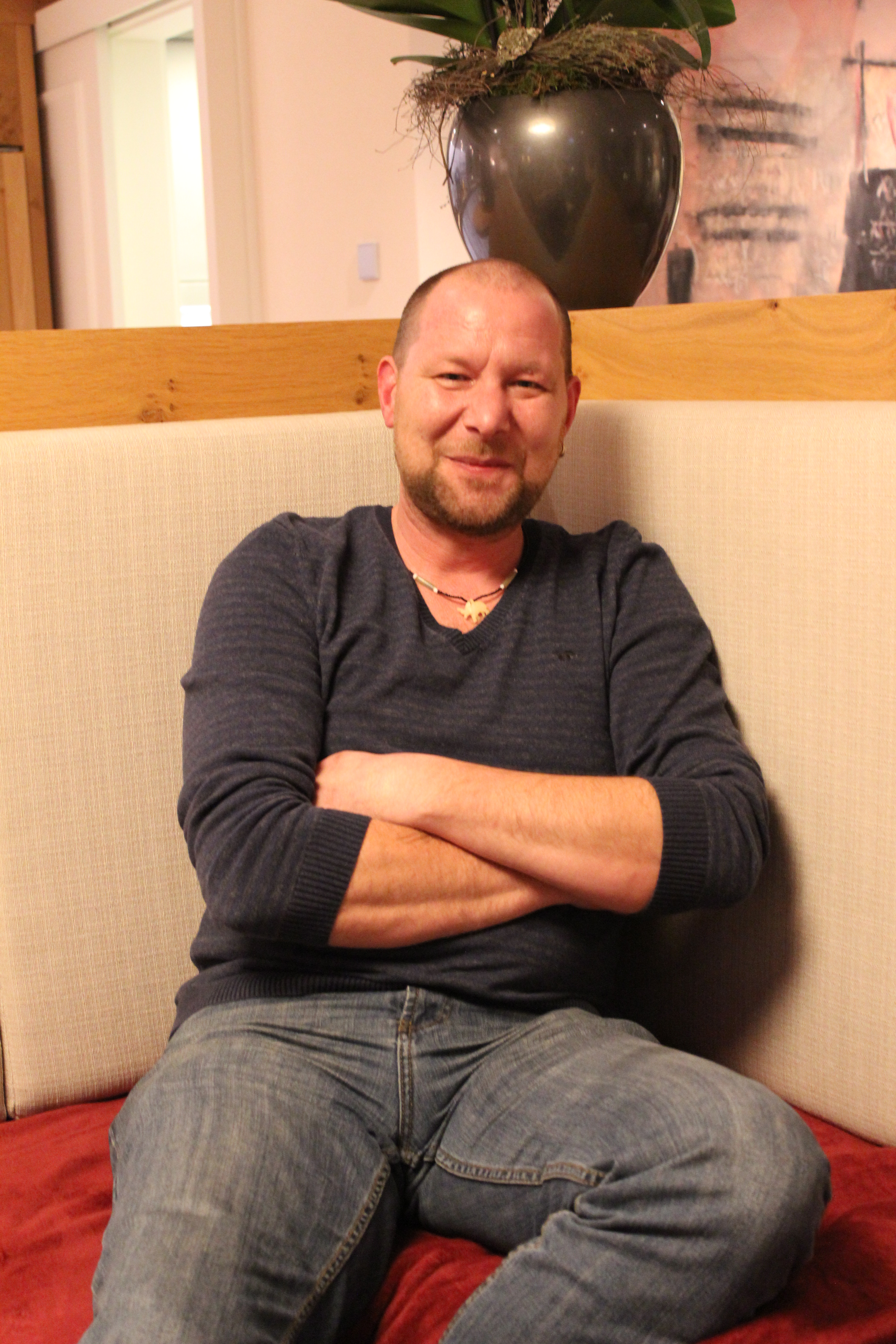 Manuel Bayer im Café Auszeit in Künzelsau beim Gespräch mit GSCHWÄTZ. Foto: GSCHWÄTZ