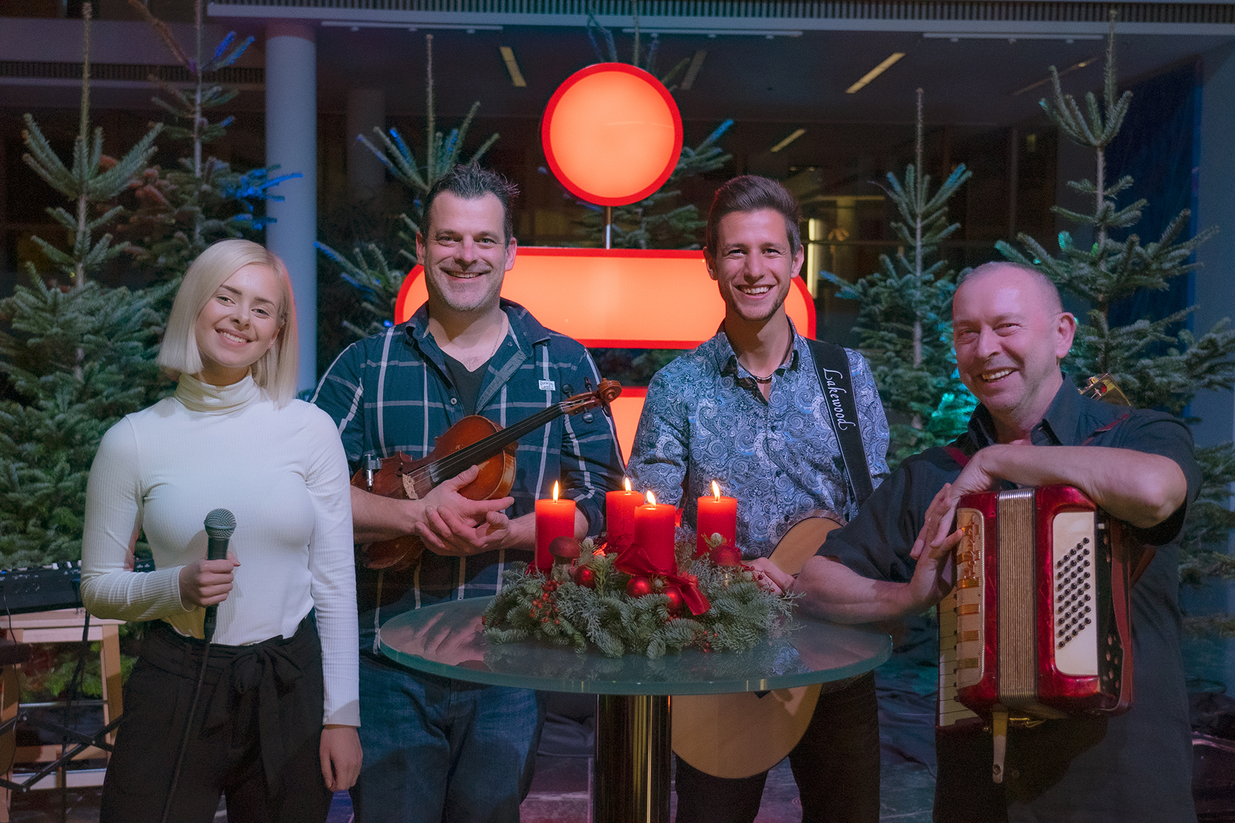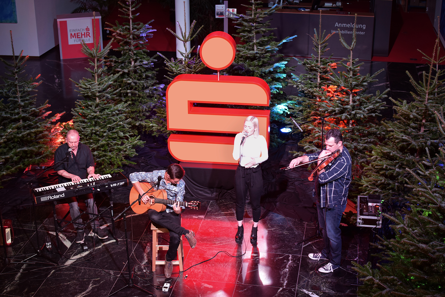 Michael Breitschopf (2.v.l.) und seine Band in weihnachtlicher Stimmung. Foto: Sparkasse Hohenlohekreis