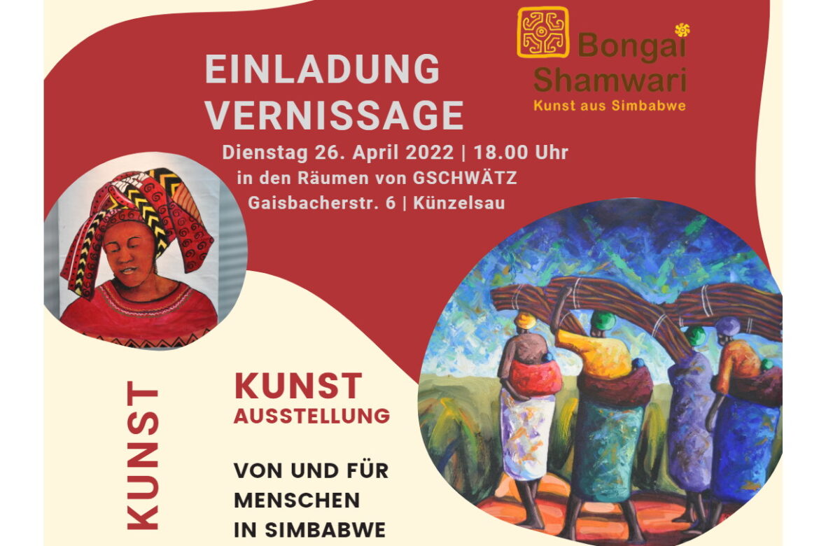 Vernissage mit afrikanischen Trommlern am Dienstag, 26. April 2022, 18:00 Uhr in der Redaktion GSCHWÄTZ, Gaisbacher Strasse 4, Künzelsau.