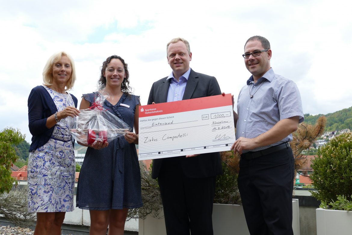 Das katholische Dekanat Hohenlohe feiert 2018 sein 200-jähriges Bestehen. Im Rahmen dieses Jubiläums überreichten Dekan Ingo Kuhbach und Dr. Thomas Böhm, Dekanatsreferent und Leiter der Dekanatsgeschäftsstelle, einen Scheck in Höhe von 1.000 Euro an Landrat Dr. Matthias Neth. Die Spende kommt den Pflegefamilien und Pflegekindern im Hohenlohekreis zugute: Geplant ist mit dem Geld ein gemeinsamer Aktionstag mit dem Zirkus Compostelli.