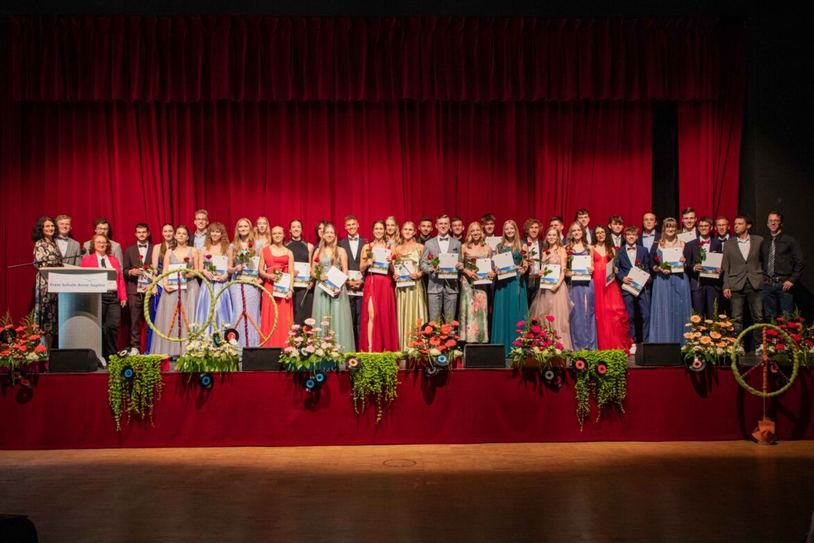 ... lautet das Abiturmotto der Abiturient:innen der Freien Schule Anne-Sophie in Künzelsau. 37 junge Menschen feierten ihren Schulabschluss zusammen mit Familien, Freunden und der Schulgemeinschaft.
