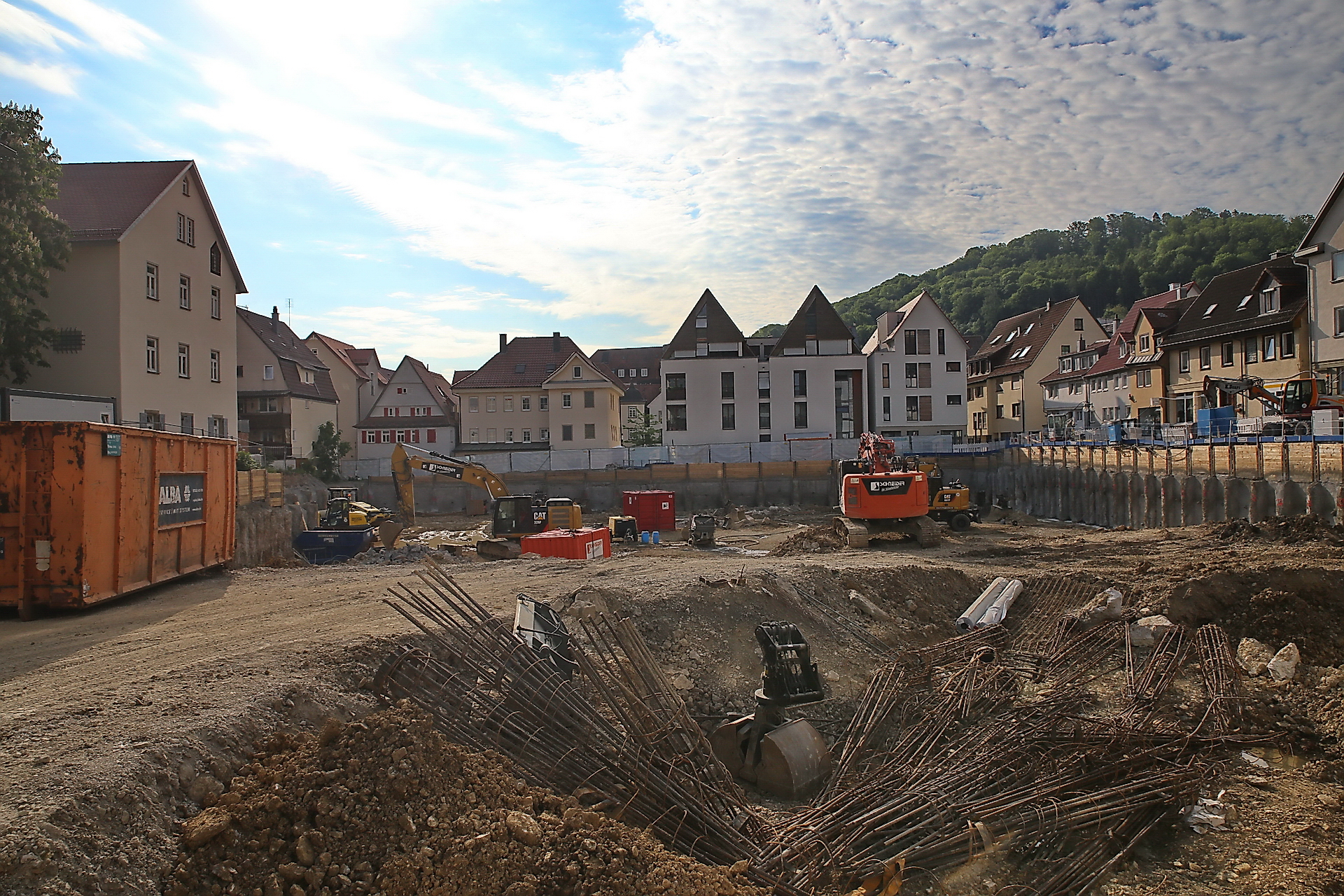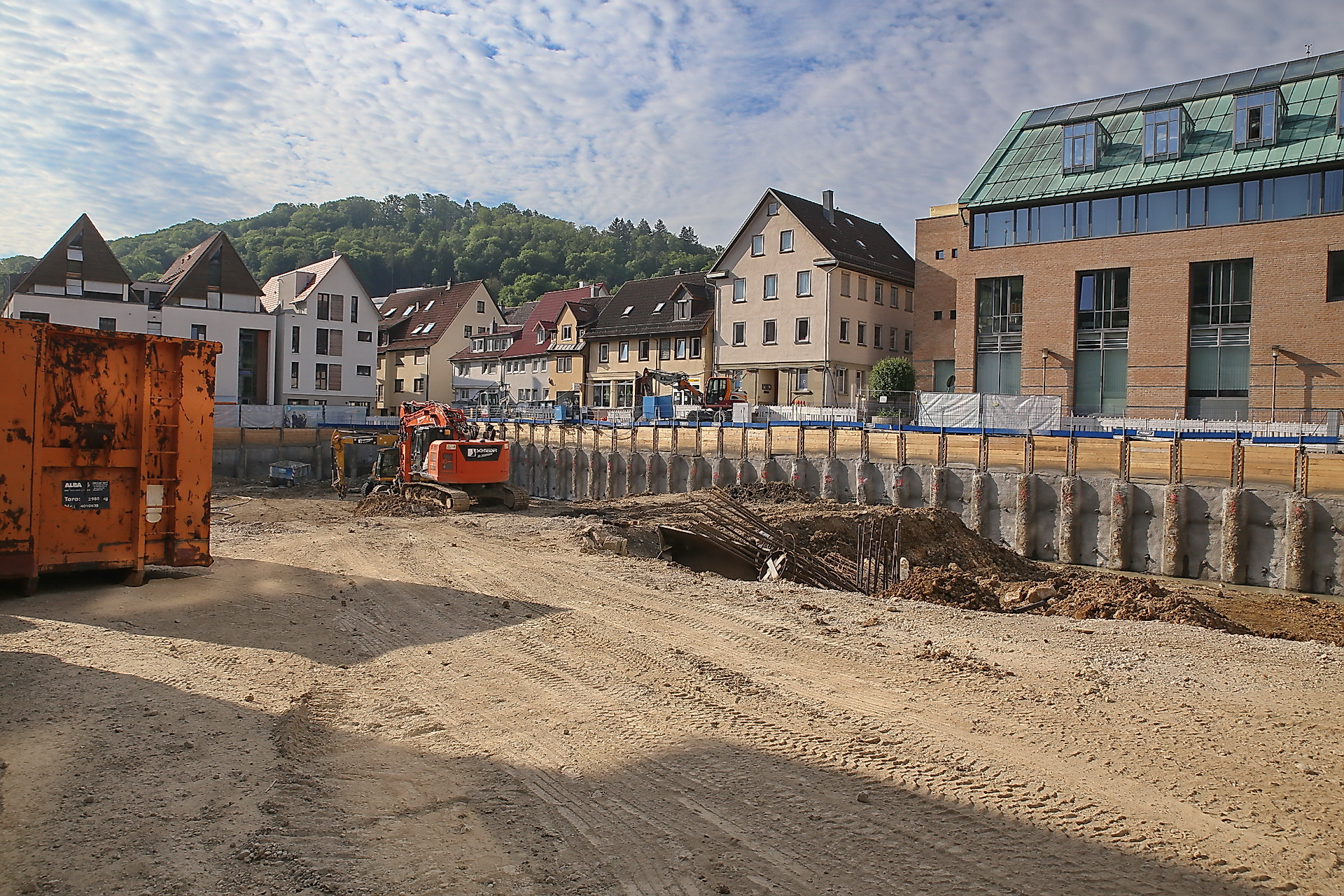 Mit dem Baufortschritt ist er zufrieden, er geht weiterhin von einer Fertigstellung des Projekts im Herbst 2022 aus, auch wenn es in der Anfangsphase Komplikationen gegeben habe. „Katasterpläne mit den Leitungen sind oft nicht genau“, spricht er aus Erfahrung – und so mußte er auch in Künzelsau feststellen, dass die Leitungen nicht so lagen wie verzeichnet. Ein wichtiges Thema, da auch Leitungsrechte der angrenzenden Grundstücke, wie der Villa Schwab und des ehemaligen Amtsgerichts, betroffen waren. Solche Themen seien aber für ihn Routine geworden, er habe „nie die Sorge gehabt, dass wirs nicht hinkriegen“.