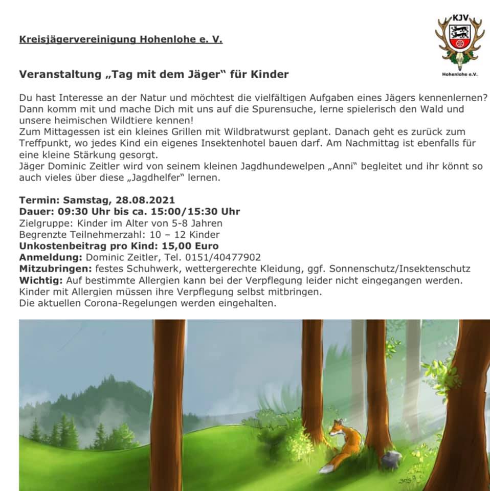 Jagsttalwild Altkrautheim und die Kreisjägervereinigung Hohenlohe laden Kinder zu einem Ausflug in den Wald ein.