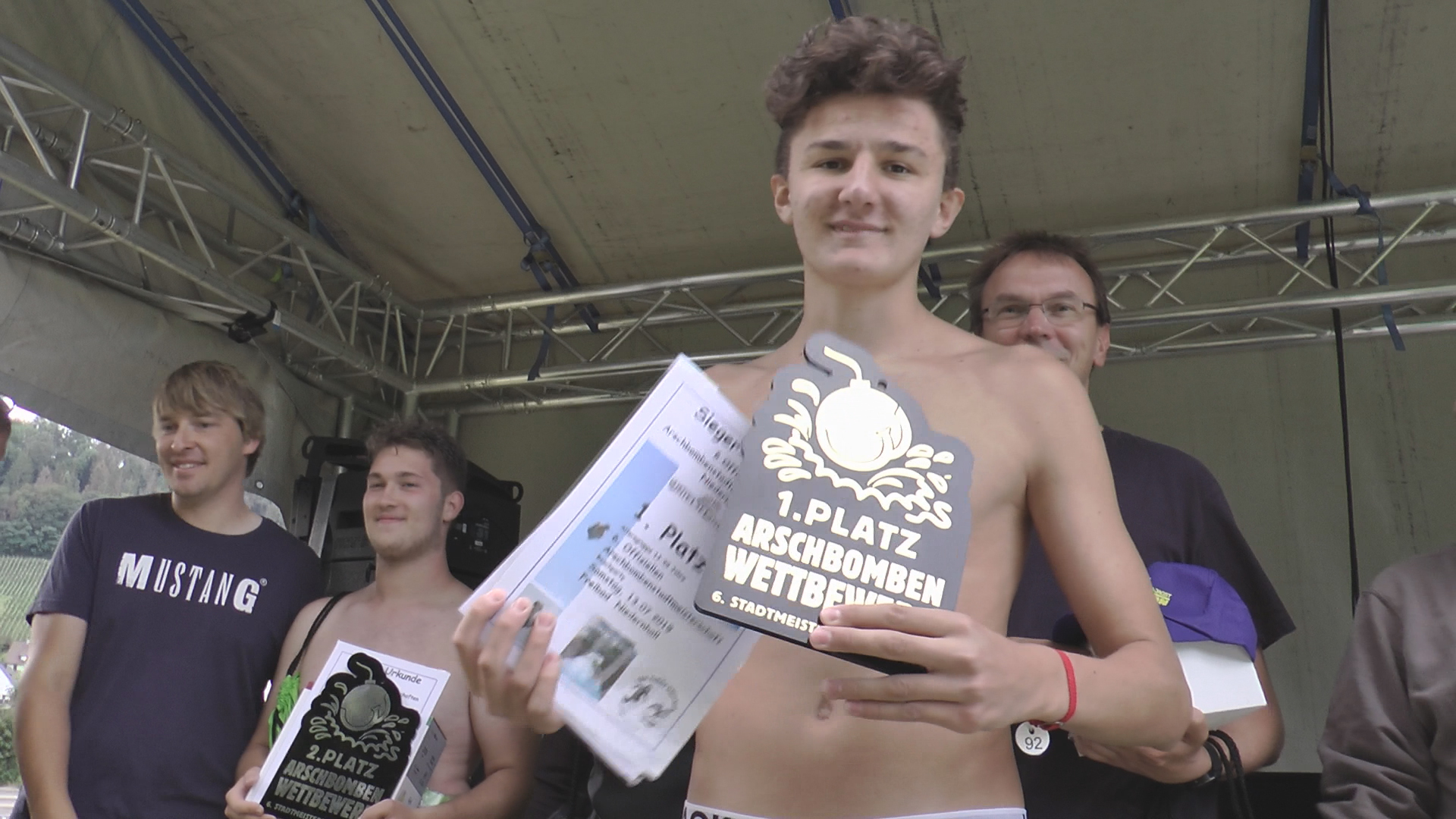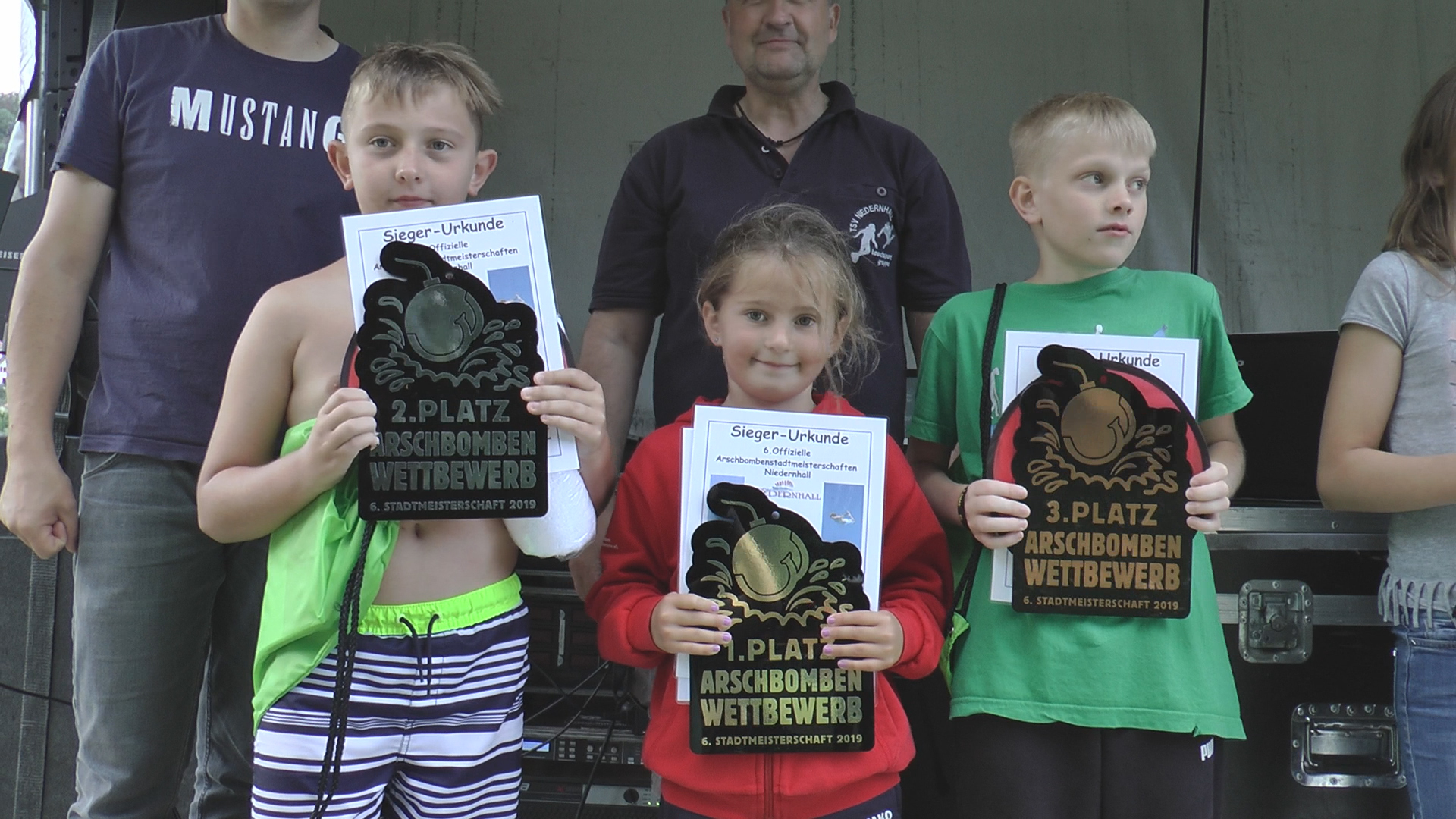 In einer Zeit, in der es keine schlimmen und schlechten Wörter mehr gibt, hat die Tauchsportgruppe des TSV Niedernhall nun schon zum sechsten Mal den sogenannten Arschbombenwettbewerb ausgerufen. Jung und nicht mehr ganz so jung sprangen vom Niedernhaller Freibadturm vom Einer, Dreier und vom gefürchteten Fünfer. Eine Jury, darunter das Stadtoberhaupt AchimBeck, bewertete in drei Disziplinen: Arschbombe Klassik, der Anker und offener Sprung. Den ersten und zweiten Platz bis 12 Jahren belegten Johanna Müller und Linus Richter. Bei den 12- bis 99-Jährigen holte der Teenager Devis Dederer den Sieg, gefolgt von Mike Pascal Weiss. GSCHWÄTZ-Videoreporter Dr. Felix Kribus hat den kühlen Spaß im Wasser am Samstag, den 13. Juli 2019, mit seiner Kamera vom Beckenrand aus verfolgt.