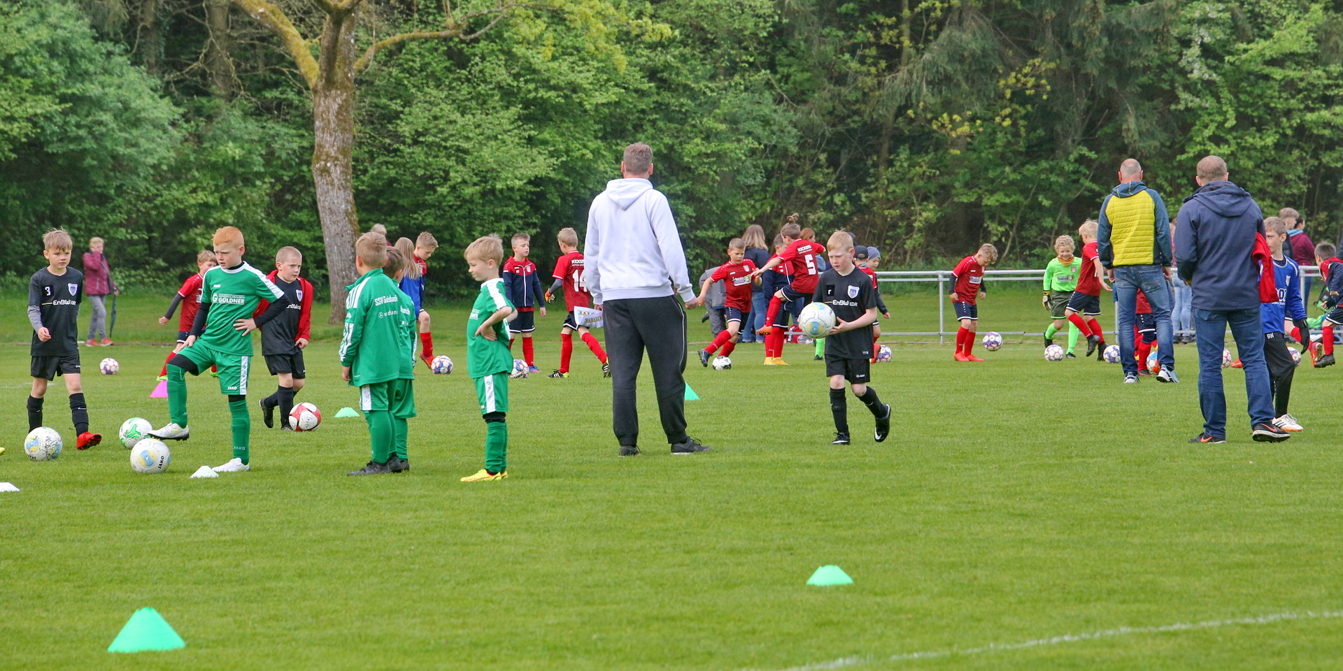 Weit mehr als 100 Kinder treffen sich am Samstag, 30. April 2022, zum großen Fussball-Spieltag der Bambini und der F-Jugend auf dem Forchtenberger Sportplatz.