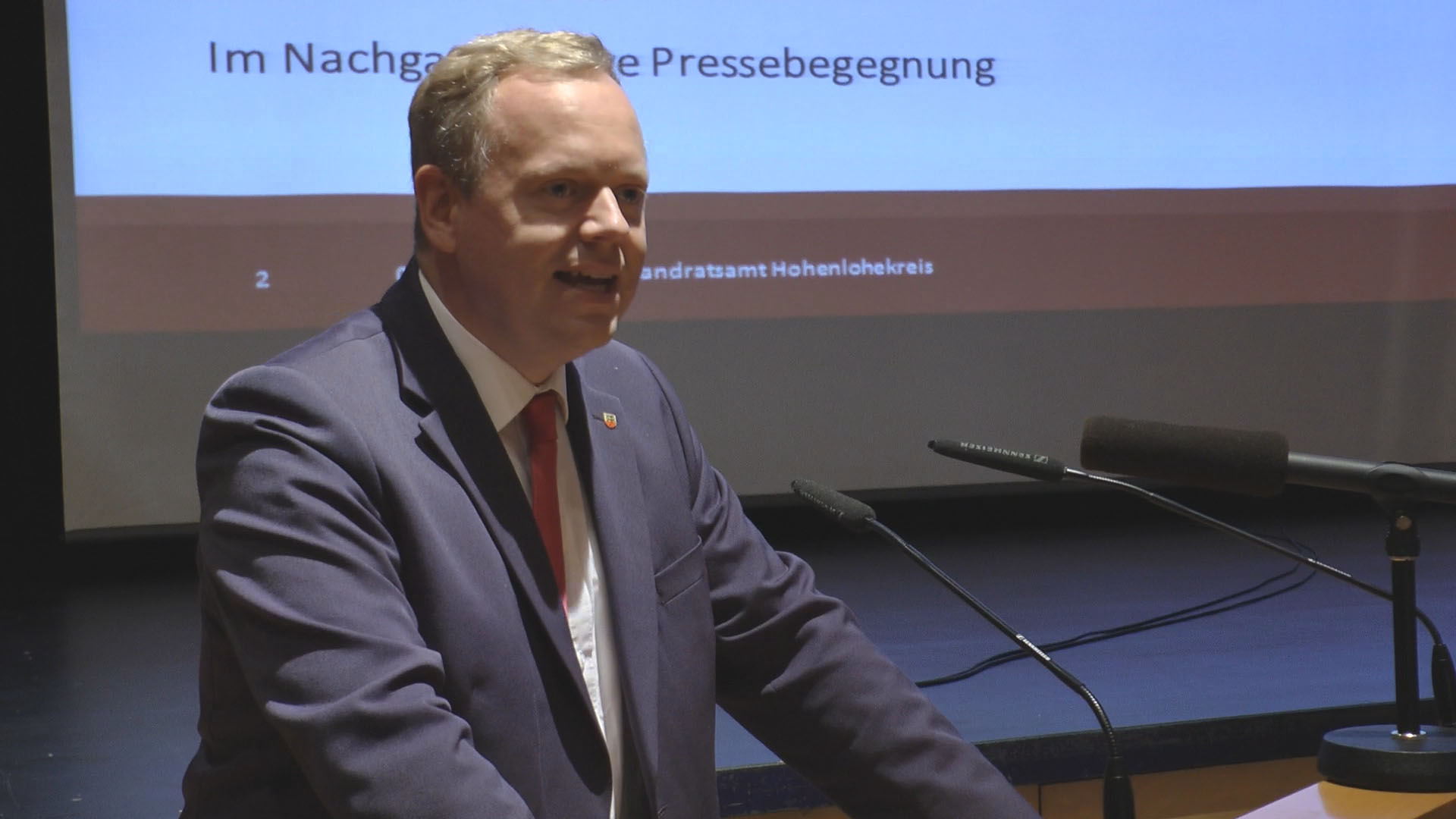 Zugegen waren bei der Veranstaltung in der Künzelsauer Stadthalle unter anderen einige Bürgermeister und Lokalpolitiker. „Schön, dass Sie im Hohenlohekreis sind und schön, dass Sie Ihre Sommertour hier auch weitergehen lassen in einem der Landkreise, der am meisten von der Corona-Pandemie betroffen war, vor allem auch, was die Inzidenz angeht, haben wir immerhin im Hohenlohekreis ungefähr eine doppelte Inzidenz als der Landesschnitt“, sagte Dr. Matthias Neth in seiner Begrüßung. Inzidenz bedeutet, die Anzahl der neu auftretenden Erkrankungen innerhalb einer Personengruppe von bestimmter Größe während eines bestimmten Zeitraums.