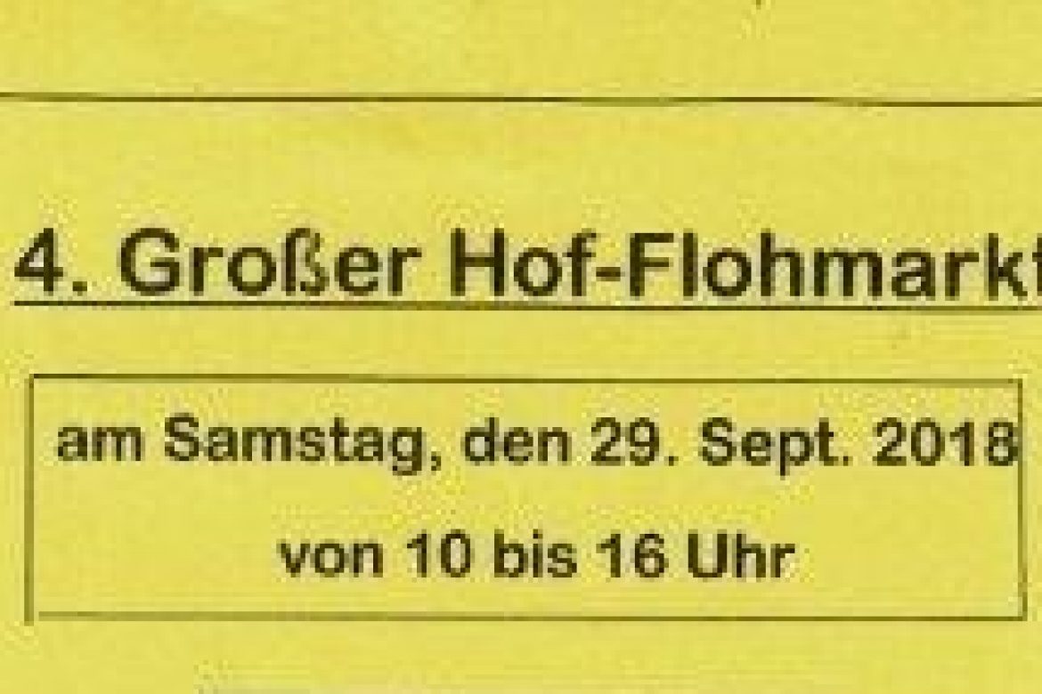 Am Samstag, den 29. September 2018, von 10 bis 16 Uhr bekommt man die Möglichkeit den großen Hof-Flohmarkt auf dem Gelände der Firma Omnibus Kohler besuchen. Über 35 Verkäufer bieten ihre Sachen an. Der Flohmarkt findet bei jedem Wetter statt, da er teilweise überdacht ist und bei schlechtem Wetter in die Halle verlagert wird.