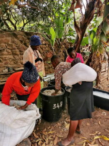 Die Eltern müssen im Kindergarten mitarbeiten, sonst müssten die Kinder die Einrichtung wieder verlassen, was auch schon vorgekommen sei. „Insgesamt ist der Zusammenhalt mit den Eltern aber gut“, so Christa Zeller. „Jeden Tag kommen ein bis zwei Elternteile zu uns.“ Einmal im Monat kommen für größere Projekte – beispielsweise den Bau eines Zauns um das Grundstück – alle Eltern zusammen. Die Mütter der Kinder stellen außerdem Dinge für den Verkauf her – beispielsweise Salze und verarbeitete Avocado- und Papayakerne, Orangen- und Zitronenschalen. „Das verkaufen wir beim Weltgebetstag oder in Eine-Welt-Läden“, so die Vereinsvorsitzende. „Zurzeit stellen die Frauen Vaseline und Seife her, die vor Ort angeboten werden.“ Besonders beliebt waren Nudeln, die vor allem weiße Bewohner von Mutare gekauft haben. Die Schuluniformen werden ebenfalls selbst genäht. „Das ist wichtig, weil manche Kinder sonst zerlumpt kommen würden“, so Christa Zeller. „Die Kinder sind darauf richtig stolz.“ Dafür kämen viele barfuß zu Schule, weil sie entweder keine Schuhe oder nur unbequeme Plastiklatschen hätten.