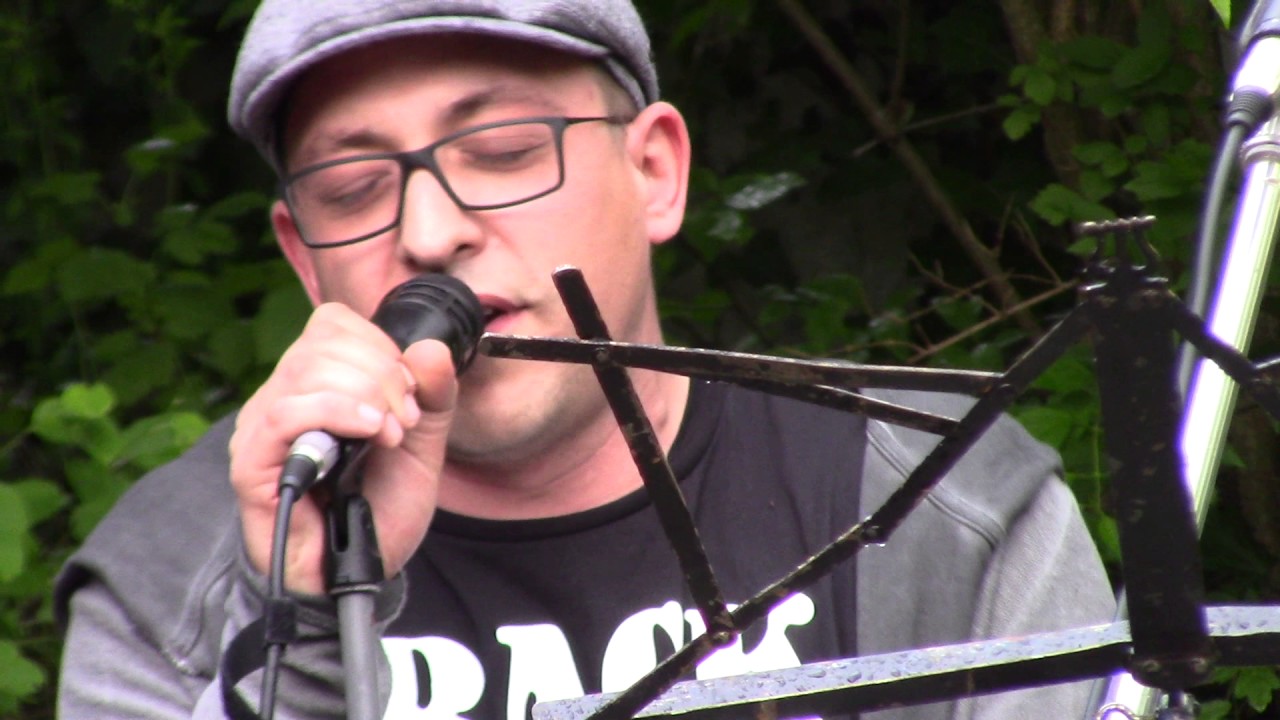 Buddy bei einem Auftritt an einer Demo der BI zum Erhalt des Künzelsauer Krankenhausstandortes. Foto: GSCHWÄTZ/Archiv