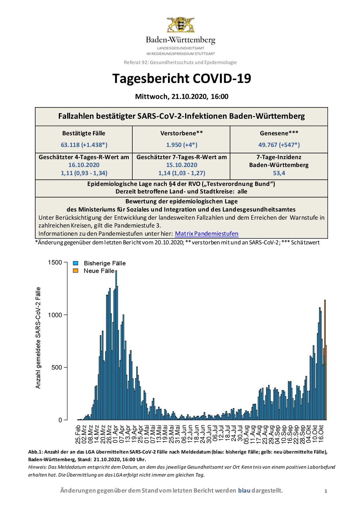 Das bedeutet unter anderem, dass sich privat nur noch bis zu zehn Personen treffen dürfen oder zwei Hausstände begrenzt. Auch im Freien ist an öffentlichen Allgemeinplätzen ein Mund-Nasenschutz Pflicht, wenn der Mindestabstand nicht eingehalten werden kann. Es soll verstärkt mit Telemedizin gearbeitet werden, unter anderem auch bei Arbeitsunfähigkeitsbescheinigungen zur Vermeidung von Kontakten in Arztpraxen. Ab der fünften Klasse sollen Schüler auch im Unterricht und nicht nur wie bisher in den Fluren einen Mund-Nasenschutz tragen. Kliniken sollen „erforderliche Intensiv-Kapazitäten für Covid-Patienten stufenweise anpassen sowie elektive Behandlungen schrittweise reduzieren“, so die Landesregierung. https://www.baden-wuerttemberg.de/de/service/presse/pressemitteilung/pid/land-ruft-die-dritte-pandemiestufe-aus/