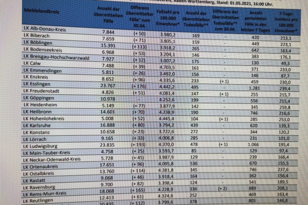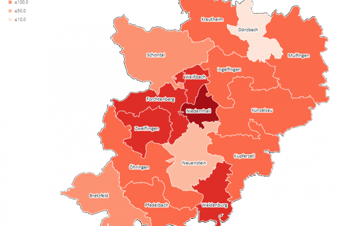 Weiterhin über 250 Inzidenz im Hohenlohekreis. Siebtschlechteste Inzidenz in Baden-Württemberg.