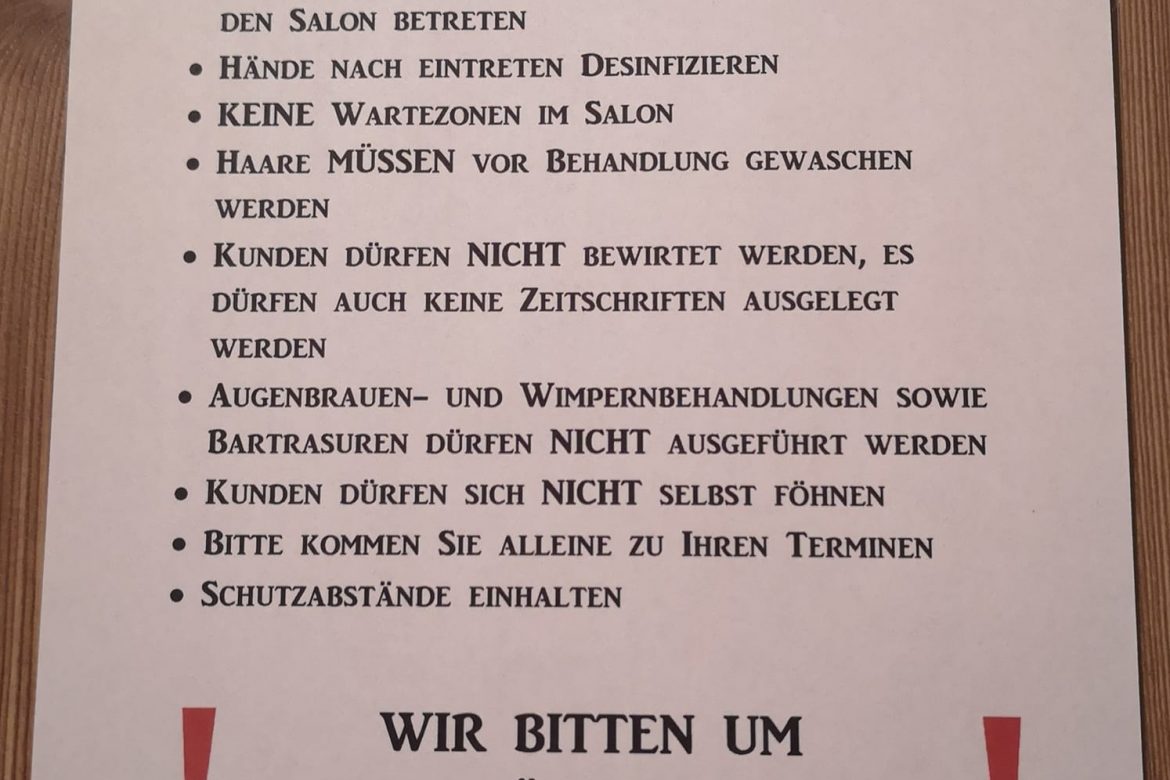 Anfang Mai 2020 dürfen Frisöre wieder ihre Geschäfte öffnen, aber sie haben dabei einiges zu beachten. Der Frisörsalon Hair Flair in Niedernhall hat auf facebook schon einmal vorab veröffentlicht, was erlaubt ist und was nicht. So dürfen Kunden fortan nur mit Mund-Nasen-Schutz den Nalson betreten. Einen Kaffee gibt es auch nicht mehr. Zeitschriften, in denen […]