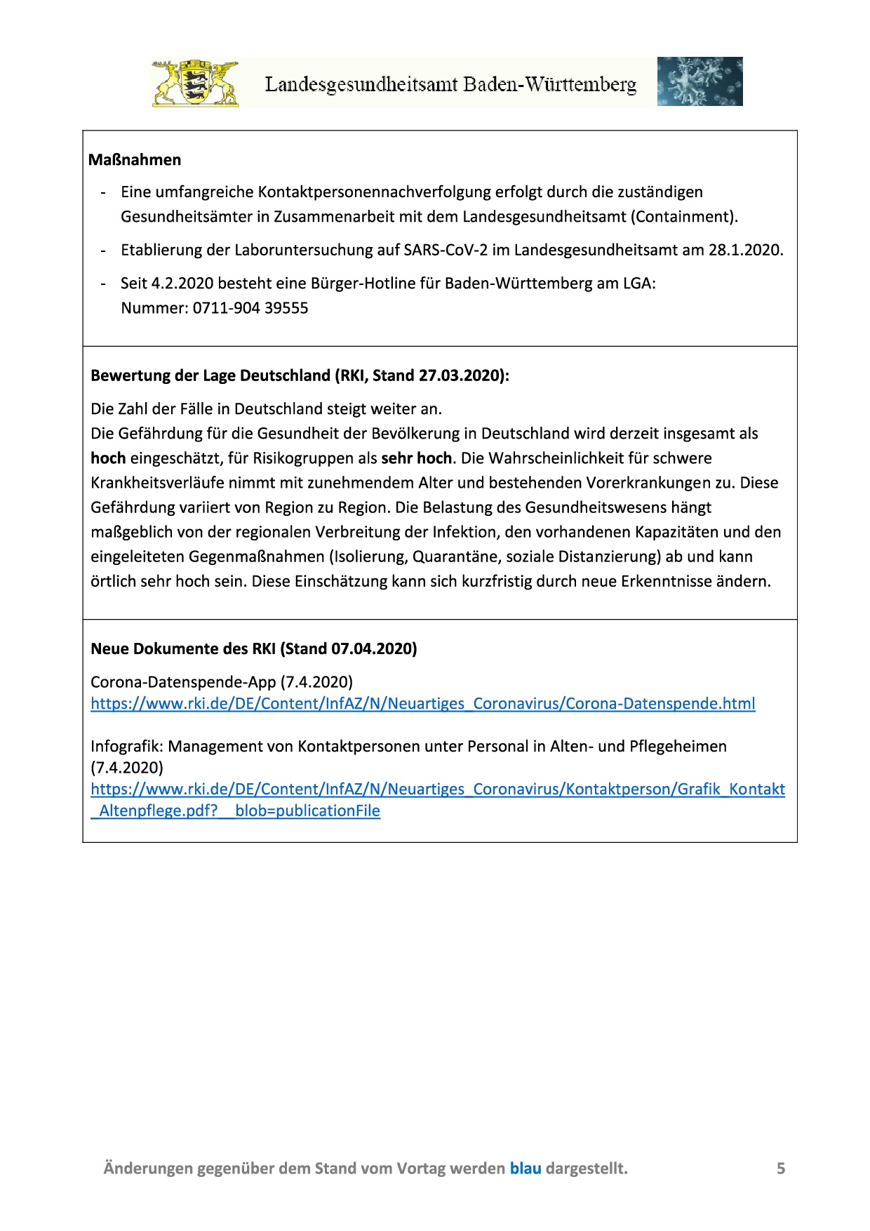 Um so erstaunlicher liest sich die Pressemitteilung vom 29.03.2020, in der Landrat Dr. M. Neth schreibt: Es steht zu befürchten, dass die Pandemie noch länger andauern und sich verschärfen wird. https://www.hohenlohekreis.de/index.php?id=291&publish[id]=1116962&publish[start] Indes steigen die Zahlen der Coronaneuinfektionen im Hohenlohekreis tatsächlich weiter an. Zwei weitere Altenheime im Kreis müssen unter Quarantäne, damit sind Stand 02. April acht Pflegeheime betroffen.
