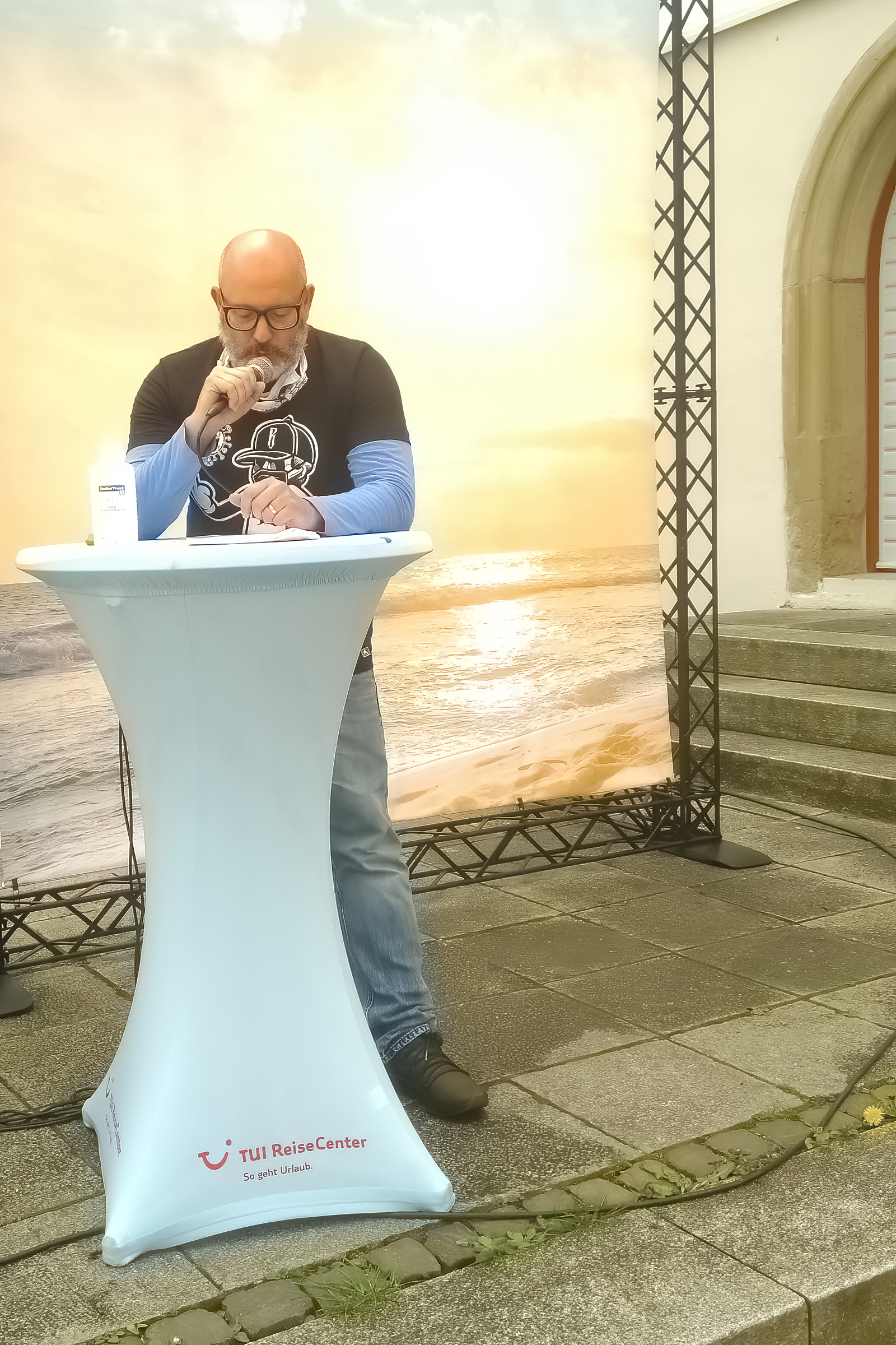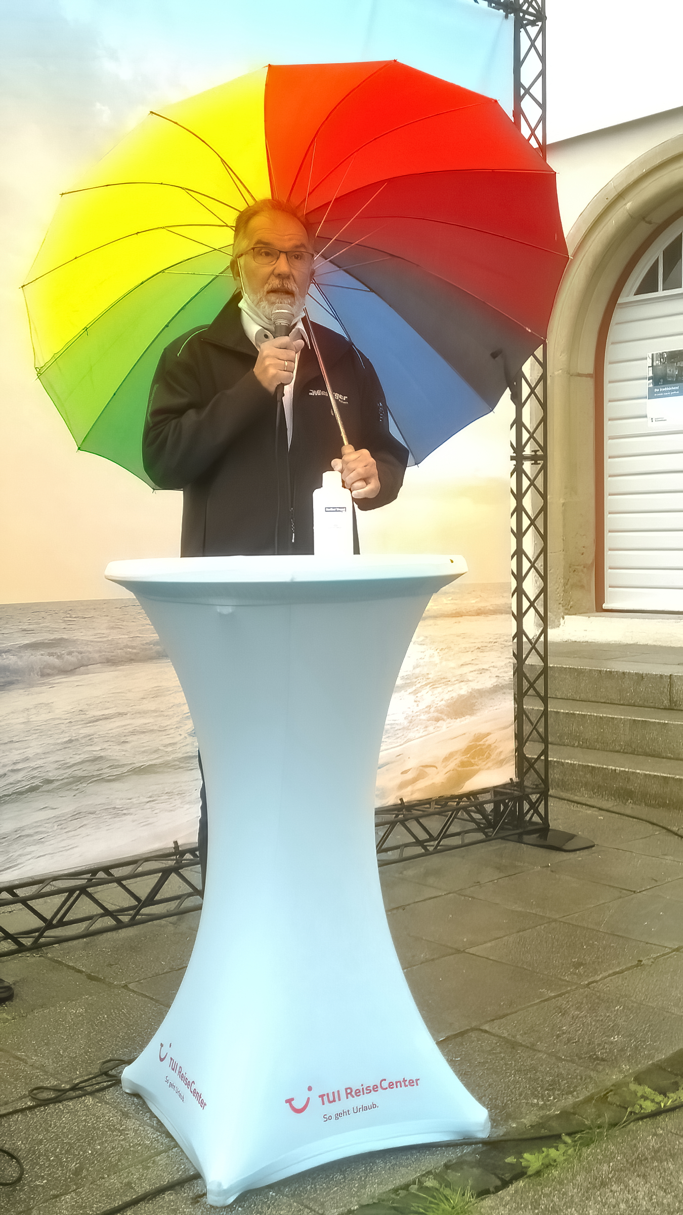 Joachim Schmidt schickt seiner Rede voraus: „Das ist Jammern auf hohem Niveau. Wenn ich mir Italien und Spanien anschauen mit wochenlangen Ausgangssperren – wir können hier demonstrieren.“ Er betont, dass die Branche zum ersten Mal in dieser Geschlossenheit demonstriert: Reisebüros, Busunternehmer, kleine Veranstalter, Hoteliers. Durch die Verlängerung der Reisewarnung bis zum 14.Juni und die damit verbundenen Stornierungen der Reisen seitens der Veranstalter wird er auch in der nächsten Zukunft mit Rückabwicklungen zu tun haben. Die Unterstützung der großen Veranstalter sei mangelhaft: „TUI hat die Reißleine gezogen, war telefonisch nicht zu erreichen. Wir hatten Tausende von Fragen – die Fragen unserer Kunden.“