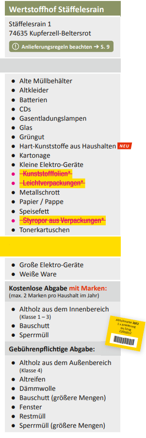 War früher vielleicht eher das Ziel, möglichst jeden Abfall einfach abzulagern, steht heute das Recycling im Vordergrund. Daher sind auf dem neu gebauten Wertstoffhof an der Deponie Stäffelesrain rund 20 Abwurfstellen für die unterschiedlichsten Stoffarten zu finden. „Wir sind froh, wenn die Leute gut trennen“, sagt Silvia Fritsch, Betriebsleiterin bei der Abfallwirtschaft Hohenlohe. Denn Müll, der nicht getrennt ist, darf nicht oder nur zu einem höheren Preis – abgegeben werden.