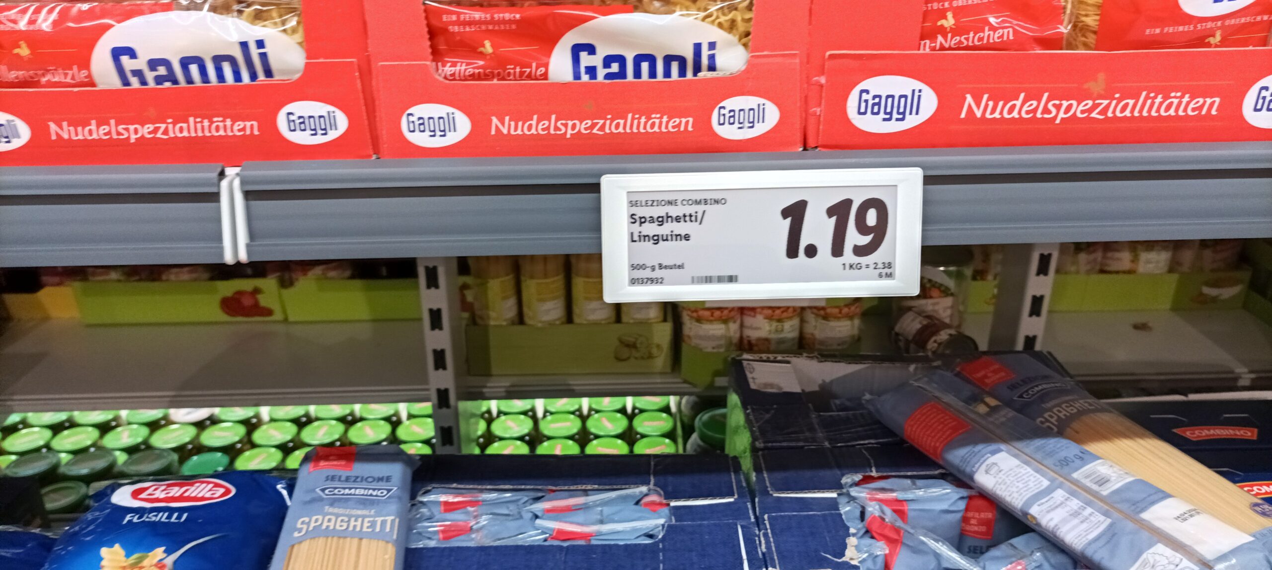 Bei den preiswertesten Kaffeesorten stieg der Preis um mehr als 20% und auch die einfache 500g-Packung Spaghetti der Discountermarke, die vorher um die 65ct kostete, ist jetzt nicht mehr unter 79ct zu bekommen. Nudelspezialitäten kosten bei der Eigenmarke 1,19 Euro, die italienischen Markenprodukte stehen bei 1,99 Euro. Für 1kg Reis zahlte man Anfang des Jahres noch unter einem Euro, heute werden 1,39 Euro aufgerufen.