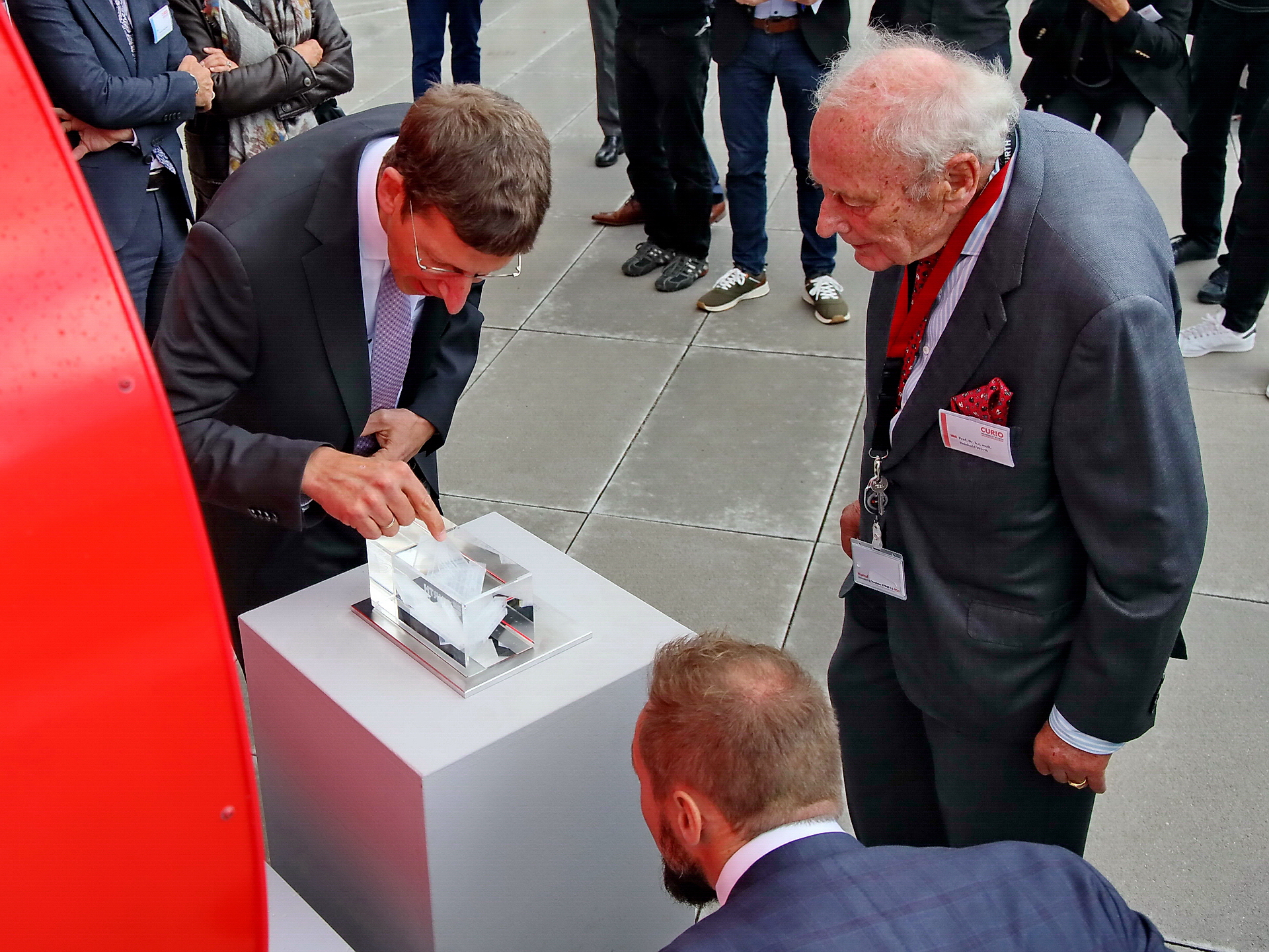 Der prominenteste angekündigte Gast, Ministerpräsident Kretschmann, ließ sich zwar entschuldigen, teilte aber per Video mit: „Würths Schrauben und Befestigungssysteme findet man heute auf der ganzen Welt – in Biberach ebenso wie in Brisbane. Ich bin sicher, das neue Zentrum wird dem Würthschen Innovationsgeist noch weiteren Schub geben. Bei Würth wurde schon immer getüftelt, um die Ecke gedacht, Gutes stetig noch etwas besser gemacht, mutig vorausgedacht und dann auch tatsächlich kraftvoll vorangegangen. Eigenschaften, die Baden-Württemberg zu einem erfolgreichen Wirtschaftsstandort gemacht haben. Und die wir dringend brauchen. Gerade jetzt – angesichts der multiplen Herausforderungen“.