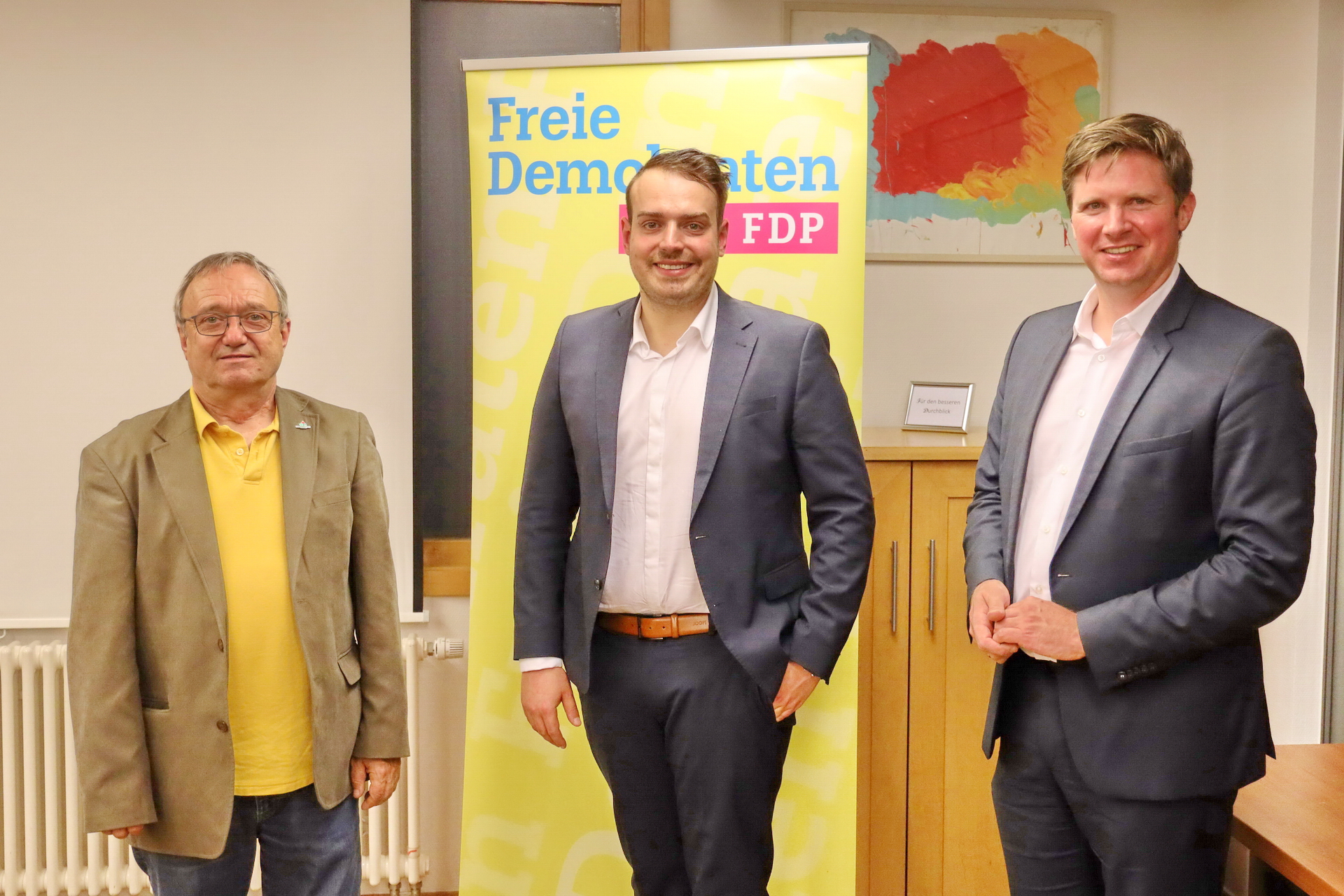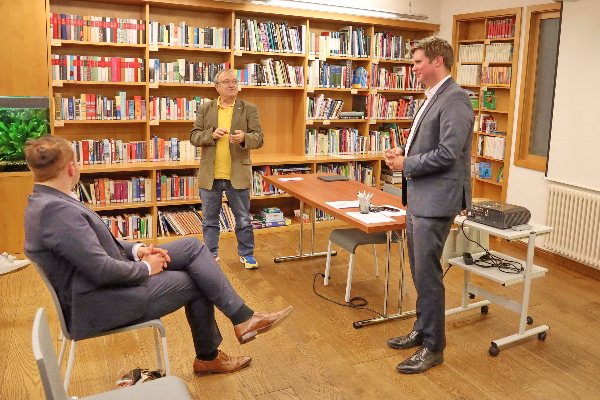 Michael Schenk (Mitte) stellt Florian Toncar (rrechts) vor. Links: Valentin Abel. Foto GSCHWÄTZ.