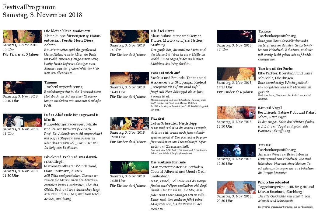 Programm des 6. Pendel Marionetten Festival.