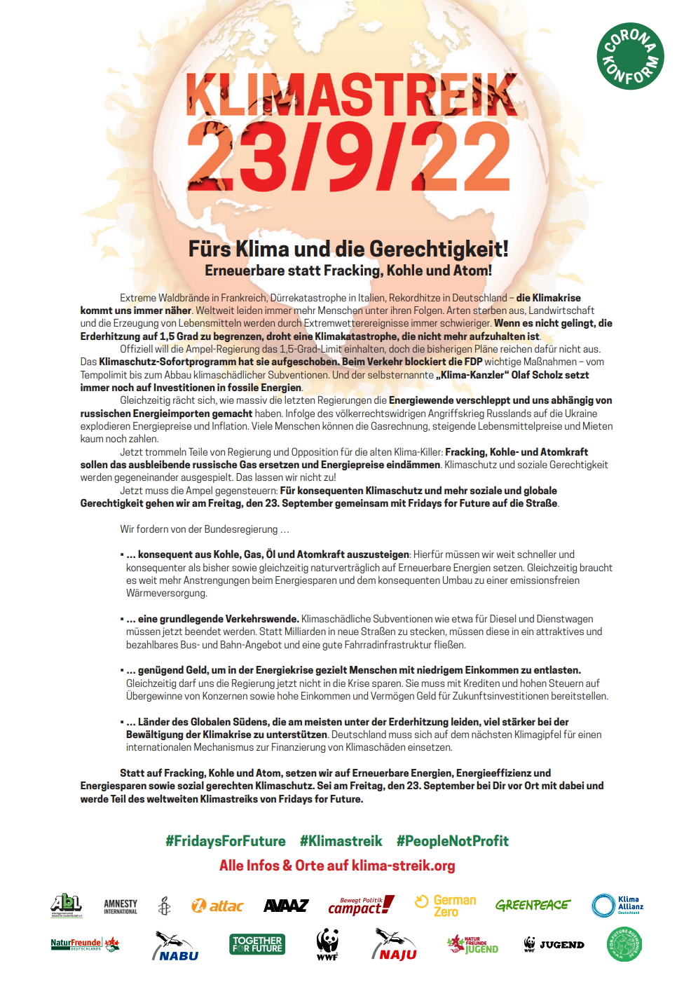 GSCHWÄTZ: Gibt es angesichts der Coronapandemie noch konkrete Planungen für Aktionen am globalen Klimaaktionstag am 24. April 2020? Wenn ja, in welcher Form und wo?