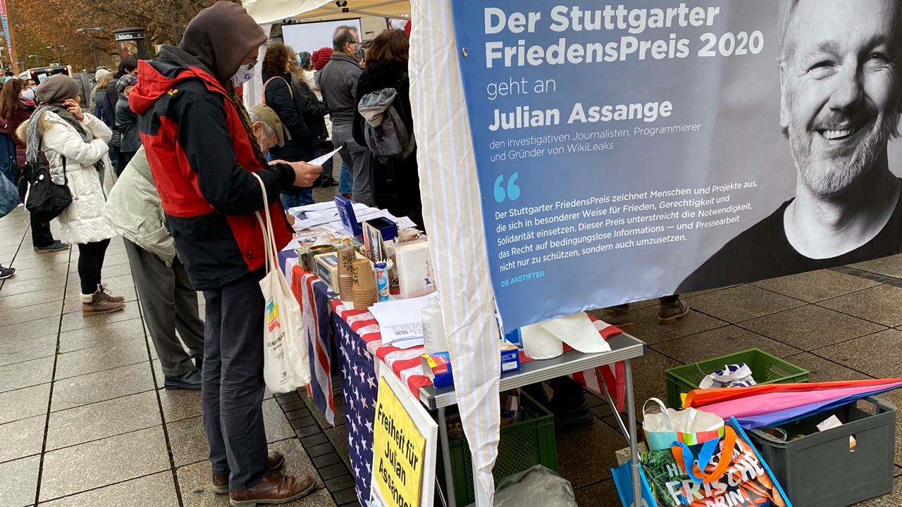 Julian Assange, der Gründer der Internet-Plattform WikiLeaks, hat den Stuttgarter Friedenspreis 2020 der Initiative „Die Anstifter“ erhalten. Diese setzt sich für Frieden und Zivilcourage ein. Die Friedenspreis-Feier auf dem Stuttgarter Schlossplatz am Sonntag, den 13. Dezember 2020, war ein Versuch, die Welt noch einmal auf das Schicksal des australischen Politaktivisten aufmerksam zu machen. Annette Ohm-Reinicke, Vorsitzende der „AnStifter“ erläuterte: „Als zivilgesellschaftliche Organisation treten die Anstifter für die Möglichkeit freier öffentlicher Meinungsbildung ein. Eine Bedingung dafür ist der uneingeschränkte Zugang zu Informationen. Julian Assange nahm sich mit Wikileaks das Recht, kompromisslos zu informieren. Dieses Handeln zu schützen heißt nicht nur, das Recht auf uneingeschränkte Pressefreiheit zu verteidigen, sondern auch an die Selbstverständlichkeit zu erinnern, dass uneingeschränkte Informationsfreiheit eine Bedingung für demokratisches Denken und Handeln überhaupt ist. Eine schlecht informierte Gesellschaft bietet den besten Boden, Fake News sowie Propaganda auf den Leim zu gehen und dadurch autoritäre Gruppen oder gar Regierungen zu stärken. Solchen Entwicklungen treten wir entgegen.“