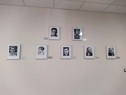 Porträts der Mitglieder der Weißen Rose im Flur der Grundschule. Foto: GSCHWÄTZ