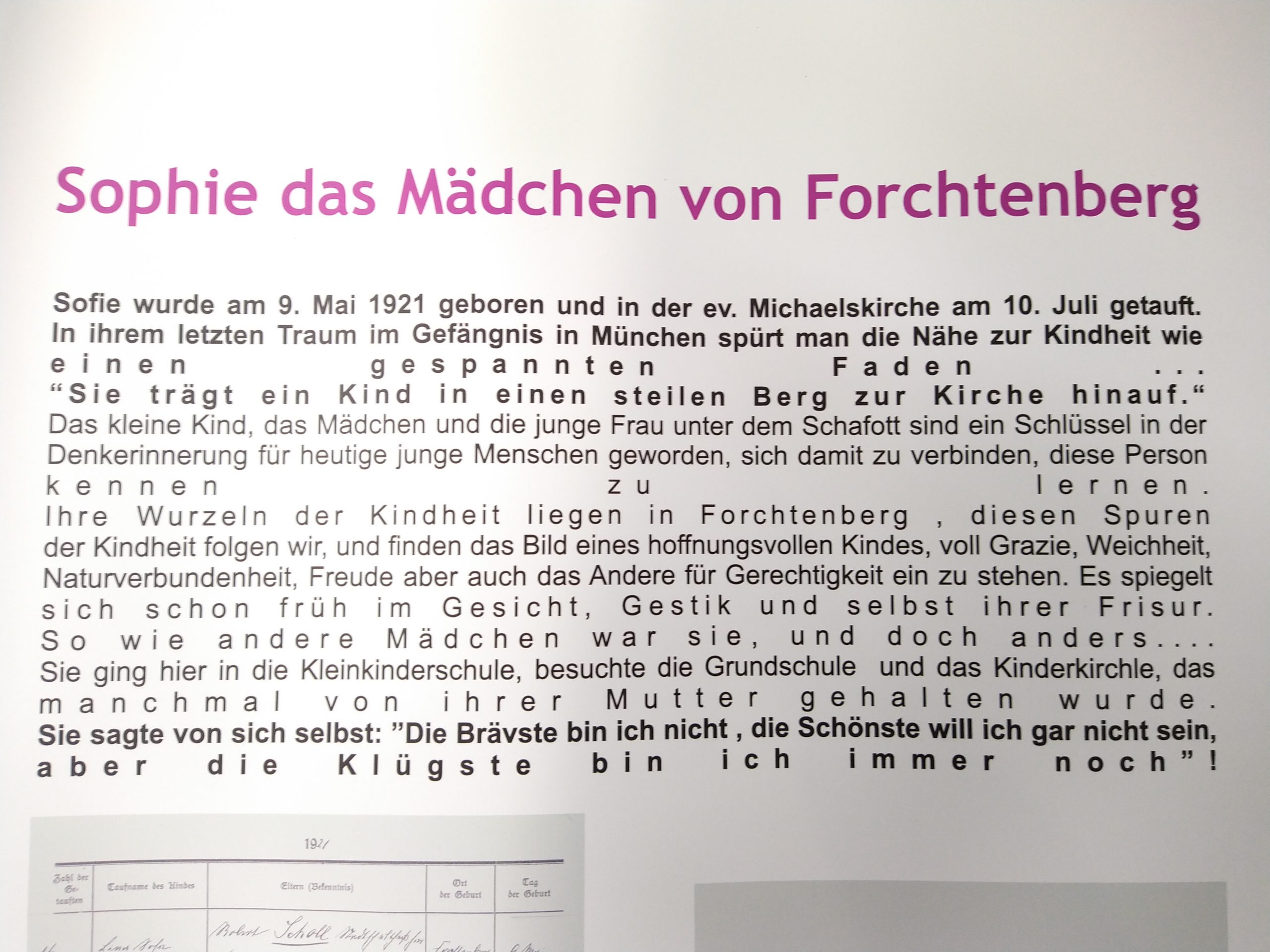 „Die Brävste bin ich nicht, die Schönste will ich gar nicht sein, aber die Klügste bin ich immer noch“ (Zitat von Sophie Scholl)
