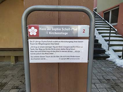 „So ein herrlicher Tag und ich soll gehen. Aber was liegt an unserem Leben, wenn wir es damit schaffen, Tausende von menschen aufzurütteln und wachzurütteln.“ (Zitat von Sophie Scholl am Tag ihrer Hinrichtung)