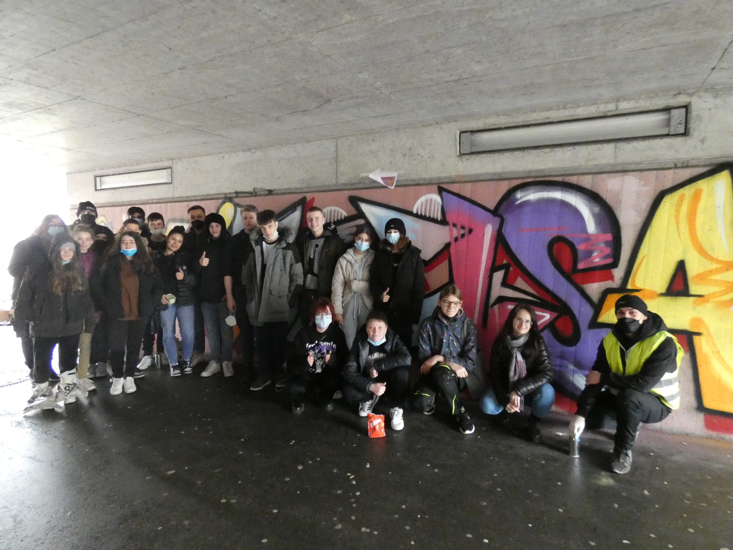 Gruppenfoto „GraffitiWorkshop_Gruppenfoto_JuliaAnnusStadtKÜN“ und GraffitiWorkshop_GeWaS_FotoJuliaAnnusStadtKÜN“: Julia Annuss, Stadtverwaltung Künzelsau.
