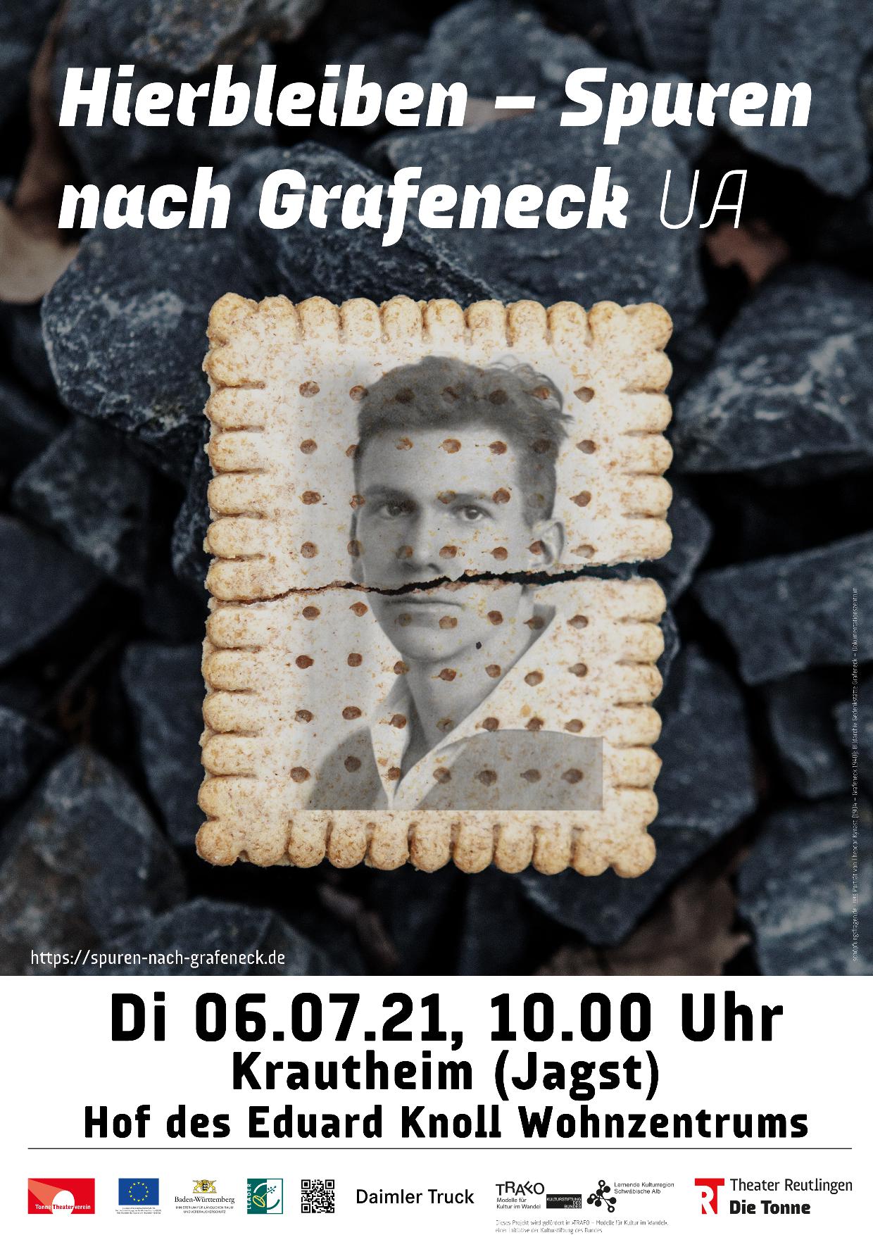 „Wir danken dem Eduard Knoll Wohnzentrum, der LEADER-Region Hohenlohe-Tauber, dem Kreisarchiv Hohenlohekreis und Historiker Dr. Scheuing für die Unterstützung der Aufführung des Projekts in Krautheim nach allen Möglichkeiten, trotz Corona“, so Projektleiter Maximilian Tremmel. Ursprünglich sollte die Premiere am 08. Mai 2020 in Reutlingen im Rahmen des Festivals Kultur vom Rande stattfinden. Die Corona-Pandemie machte eine Neuplanung nötig, die erste Aufführung fand am 17. September 2020 in Mosbach statt. Die Aufführungen des Projekts stoßen auf großes Interesse bei der Bevölkerung. In Gesprächen berichteten die Zuschauer:innen, darunter auch mehrere Schulklassen, von einem beeindruckenden und bewegenden Theatererlebnis.
