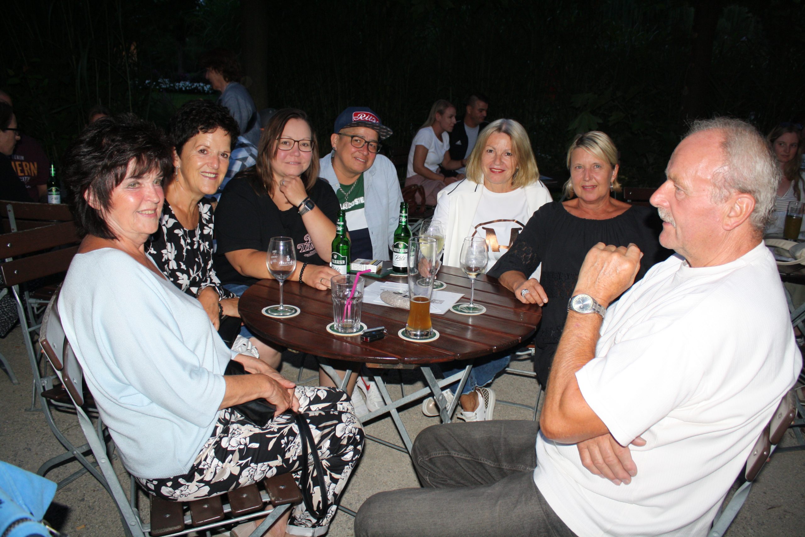 „Wir sind hier beim Schlumpi im Hamballe und finden es echt super toll. Er macht immer mega Stimmung“, erzählt Ilonka Heerlein. „Auch die Kulisse ist einfach toll – für Alt und Jung! Und die Spendenaktion mit den Shadows ist wirklich eine ganz, ganz tolle Idee.“ „Ich finde das toll, was der Hamballe heute veranstaltet“, sagt Ute Wieland. „Vor allem die Spendensammlung für die Flutopfer, also, dass für jedes Getränk ein Euro für den guten Zweck aufgeschlagen wird. Wir haben auch schon gesagt, dass wir heute natürlich auch am Schluss noch etwas spenden und in die Spendenbox werfen werden.“ Moni Wieland-Forster fasst den Abend folgendermaßen zusammen: „Ich finde es einfach nur toll hier. Tolle, super Stimmung, geile Musik – Es ist einfach wie im Urlaub hier.“